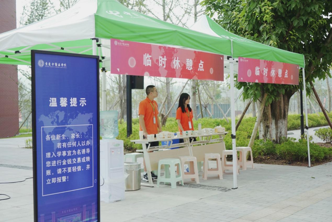 为了给同学们提供更加高效、贴心的服务。学校不仅开设了从地铁1号线璧山站、天门汽车站、璧山24队汽车站、璧山高铁站等4路接驳车,还分别设置了专属于各个学院迎新工作台。分工明确,流程简单,新生、家长纷纷点赞!