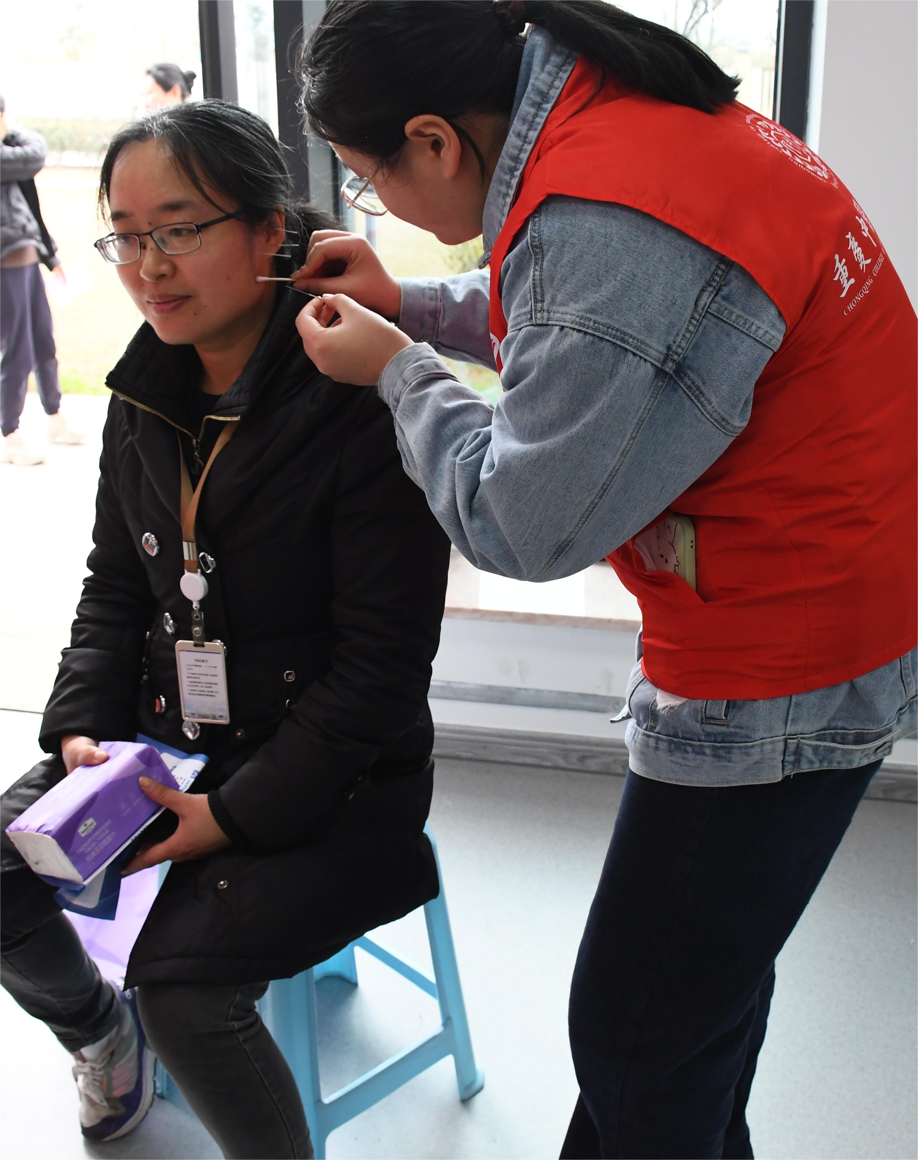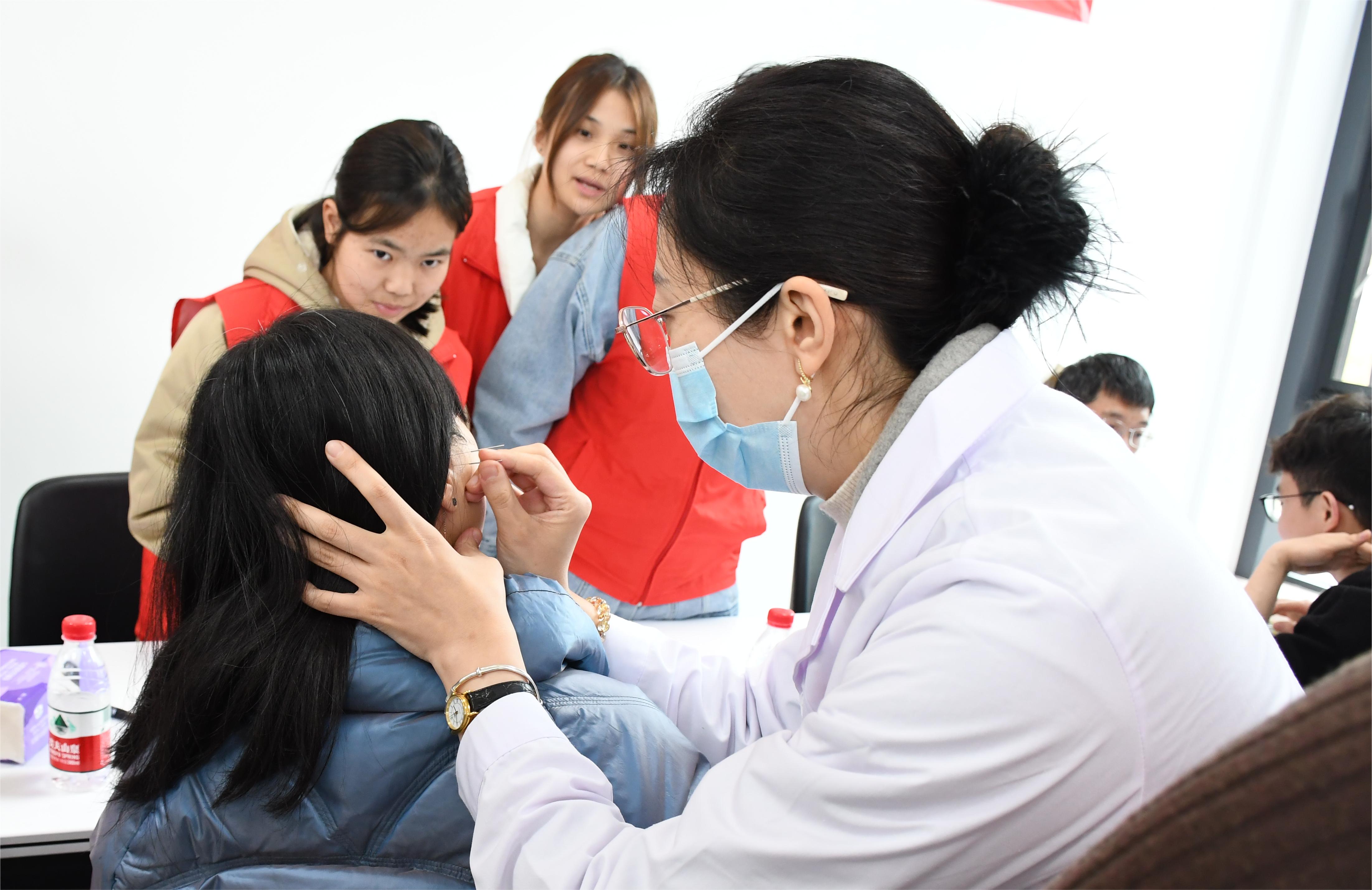 在义诊活动现场,记者发现义诊团里的学生志愿者也在为患者实施针灸治疗。带着疑惑,记者上前询问才得知,他们虽然还是大一的学生,但已经能在老师的指导下进行临床施针了。这主要得益于bat365中文官方网站创新提出的“早临床”教学理念。