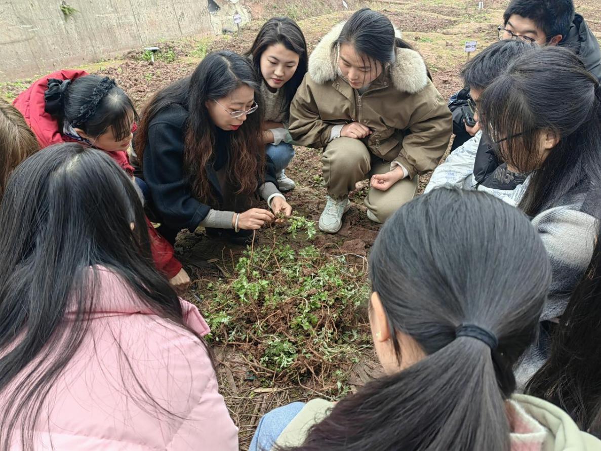 课间,同学们来到学院背后的种植园地,认真的为艾草地翻土挖坑、除草浇水。“中草药功效神奇,是中华文化的瑰宝。艾草对土壤适应性较强易存活,但同学们不要忘了定期来浇水除草哦”,针对存活率较低的种植区,中药资源教研室的老师们带着同学们进行补种,并再次讲解了艾草的生长习性和种植要点。