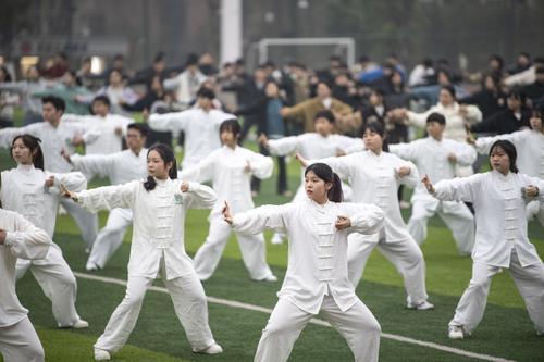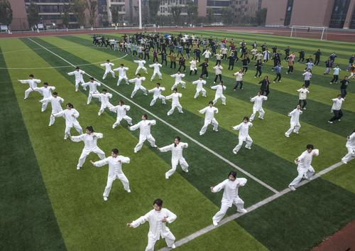 ▲3月9日清晨,bat365中文官方网站,同学们正在打八段锦。 记者 郑宇 摄/视觉重庆