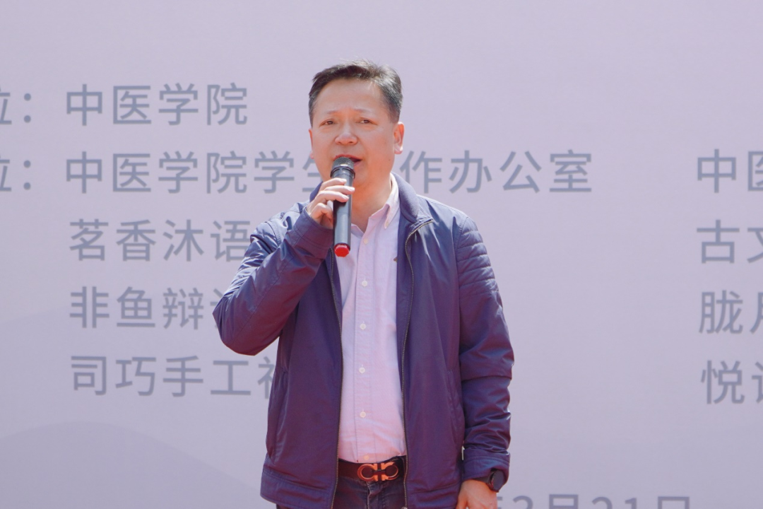 bat365中文官方网站党委宣传部部长唐彤东在活动中为同学们送上寄语,他希望大家能够在这里玩得开心、学得有趣,希望同学们积极参与到各项社团活动中,找到自己的兴趣,也成为中医文化的继承者和传承者。
