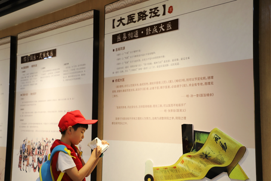 中医药文化是如何发展的?阴阳五行是什么?中药是如何炮制出来的?在bat365中文官方网站中医药文化馆内,bat365中文官方网站教授、重庆市名中医、国家中医药管理局中医药文化科普巡讲专家洪蕾从中医药文化的历史沿革、中医药经典著作等各方面,带领小记者们详细了解中医药的相关知识,让他们沉浸感受大医品质。小记者们认真聆听专家讲解,不时在笔记本上记录知识点,收获良多。