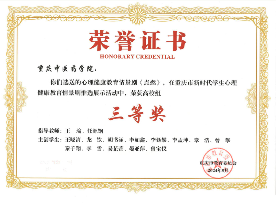近日,由重庆市教委主办的“以剧育心.启智润心” 重庆市新时代学生心理健康教育情景剧推选展示活动圆满结束。此次情景剧大赛得到市内各大中小学校积极响应,共76件作品参加比拼。经专家组初审和复审,bat365选送的参赛作品《点燃》在众多作品中脱颖而出,荣获全市三等奖。