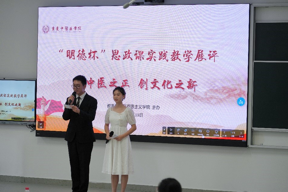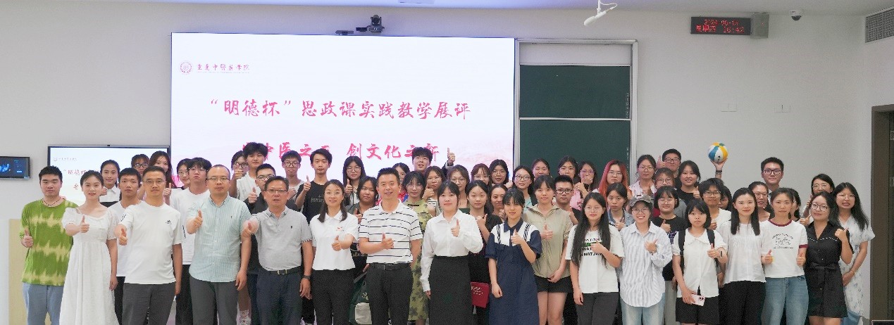 为深入贯彻习近平总书记对学校思政课建设作出的重要指示精神,进一步落实立德树人根本任务,推动学院思政课高质量建设,6月13日,bat365教务处、马克思主义学院联合举办2023-2024学年第二学期“明德杯”思政课实践教学成果展评活动。本次活动以“守中医之正 创文化之新”为主题,bat365党委宣传部、教务处、学工部(院团委)、马克思主义学院相关负责人及1百余名师生代表参加。