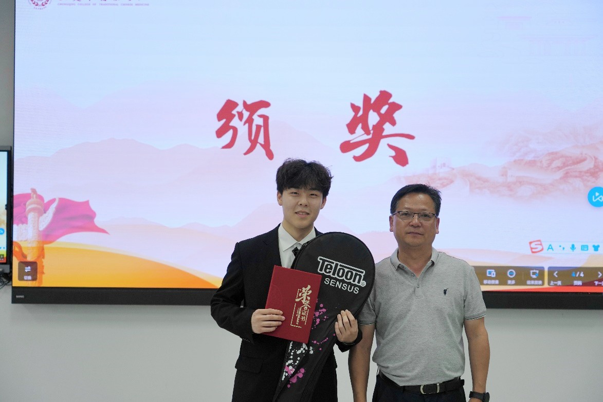▲中医学院党总支副书记姚玲为三等奖代表颁奖