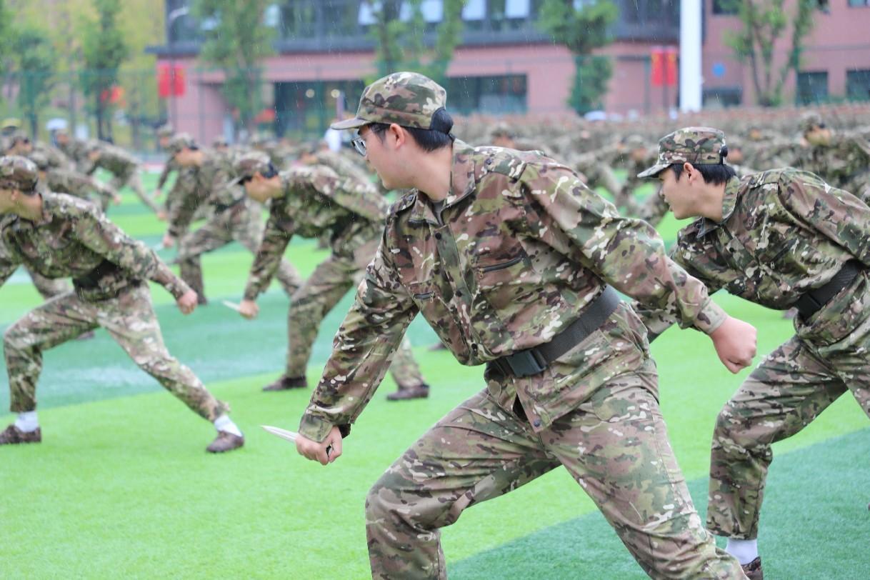 无惧风雨,不怕磨砺,汇报表演中,受阅新生们斗志昂扬,步伐铿锵有力,目光炯炯有神,脸上洋溢着青春的风采。国旗班护旗方队身姿挺拔,目光坚定,彰显着强国强军的坚定信念。分列式方队展示中,新生们脚步铿锵,整齐划一,口号响亮,热情昂扬。军体拳展示中,新生们身形矫健,拳拳用力、招招到位。匕首操展示中,闪转腾挪,气势磅礴,尽显赤诚爱国心。模拟攻防演练展示中,“战斗”紧张感瞬间拉满,运动场秒变“战场”,“战士们”动作敏捷,迅速出击,势如破竹,快速完成“人质解救”任务,尽显“英雄本色”。