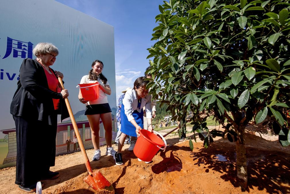 2024年6月24日,参加2024“鼓岭缘”中美青年交流周的嘉宾在鼓岭共同植树留念。新华社记者 魏培全 摄