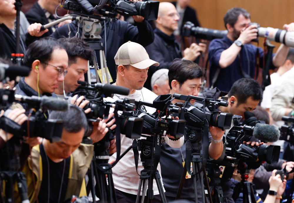 2025年3月10日,全国政协十四届三次会议在北京人民大会堂举行闭幕会。这是记者在会场采访。新华社记者 张玉薇 摄