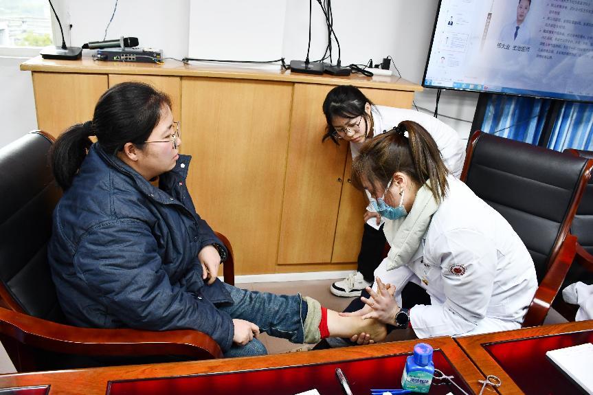 手臂功能受限、膝关节疼痛、腿疼……患者纷至沓来,在大路街道社区卫生服务中心的中医馆,唐成林一边给患者把脉问诊,开展针灸、电针治疗,一边给社区医生以及来自大竹村卫生室的村医吕伟等基层医生代表,传授分享针对不同疼痛症状针灸选穴的要诀,给基层医生们上了一堂鲜活的临床教学课。