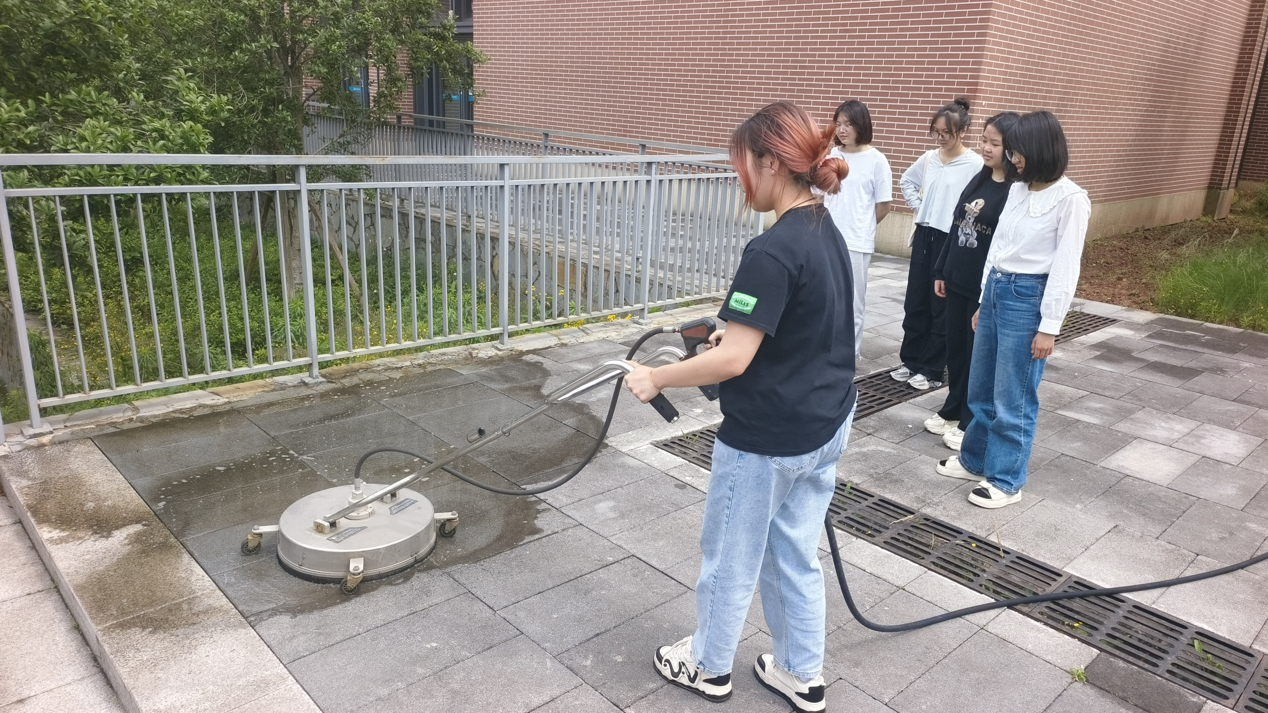 本次活动聚焦后勤核心服务场景,精心设置食堂服务员、安全排查员、绿化养护小能手、校园清洁大使、秩序督导、宿舍小助手等6类实践岗位,让学生全方位感受后勤工作的精细与艰辛。其中,20名学生代表以“食堂服务员”身份参与食材溯源、后厨卫生全流程检查、食品制作等工作,深入体验“一餐一饭”的安全守护;10名学生担任“安全排查员”,协助排查校园安全隐患;50名“绿化养护员”与10名“校园清洁员”共同完成绿植修剪、培土浇灌及公共区域清洁工作;9名学生秩序督导员协助值班保安维护入校秩序,守护好校园的第一道防线;6名“宿舍小助手”跟随宿管巡查设施、登记报修,从琐碎细节中读懂贴心服务的价值。
