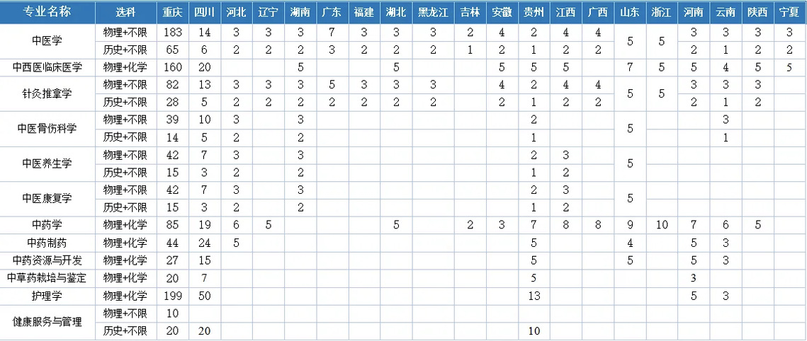 注:报考条件为户籍地属于“乡村”的重庆市高中毕业生。免除学费、住宿费,每年补助一定的生活费,服务期共6年(包含3年全科住院医师规范化培训)。