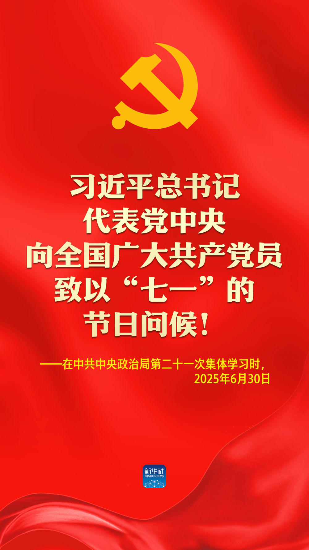 海报:习近平总书记代表党中央向全国广大共产党员致以“七一”的节日问候!