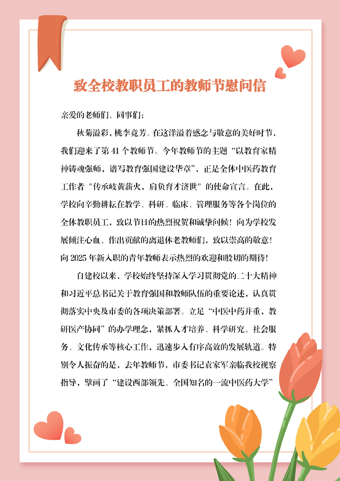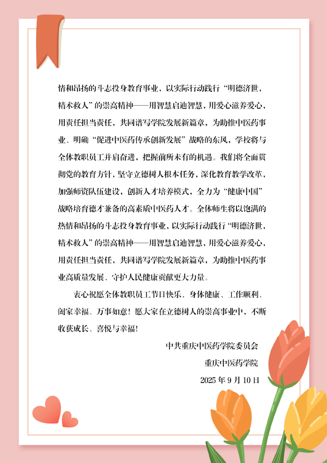 致全校教职员工的教师节慰问信