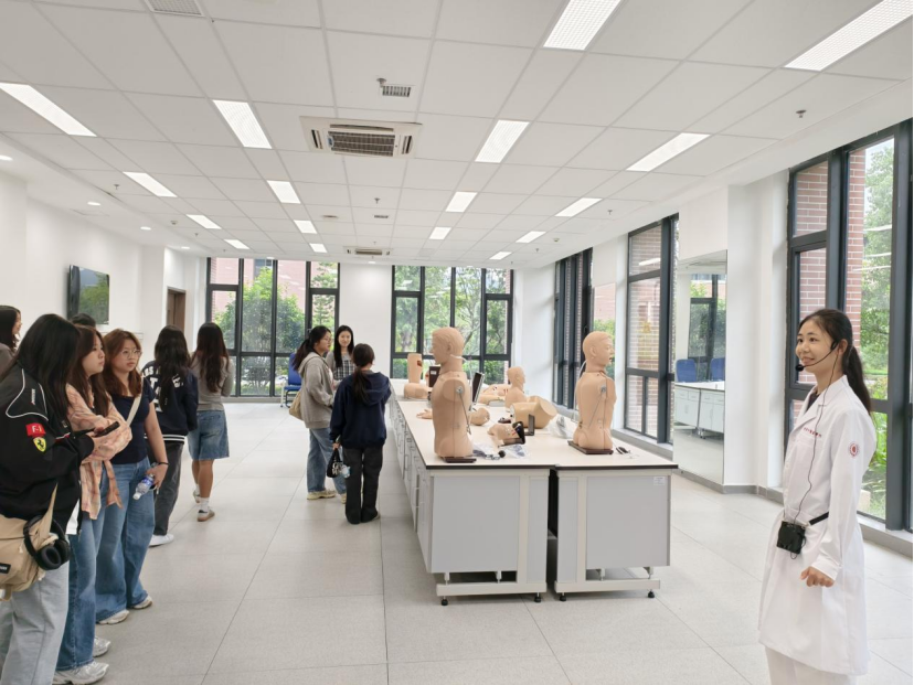 代表团参观了学院基础医学院数字化解剖实验室、中医药文化馆、中药资源及产品展示中心及护理学院专项技能实训室,亲身体验了中医传统养生功法——八段锦,积极参与中医药特色糕点、漆扇、艾草锤制作等中医药主题社团活动,在一系列妙趣横生的互动中,切身感受了中医药文化的魅力。