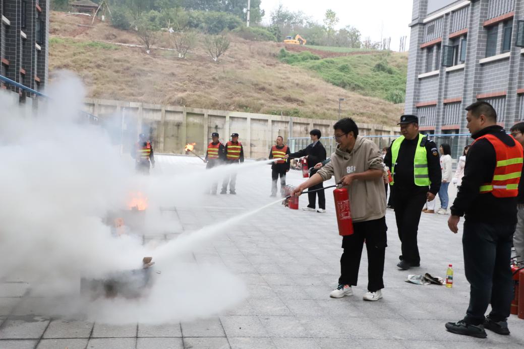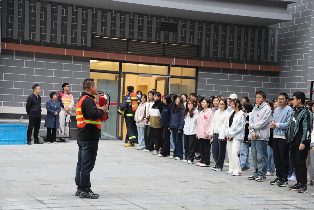 疏散结束后,后勤保卫处有关人员在集结区现场详细讲解了干粉灭火器的使用方法,师生们通过动手实操巩固学习内容,切实将理论知识转化为实践技能。