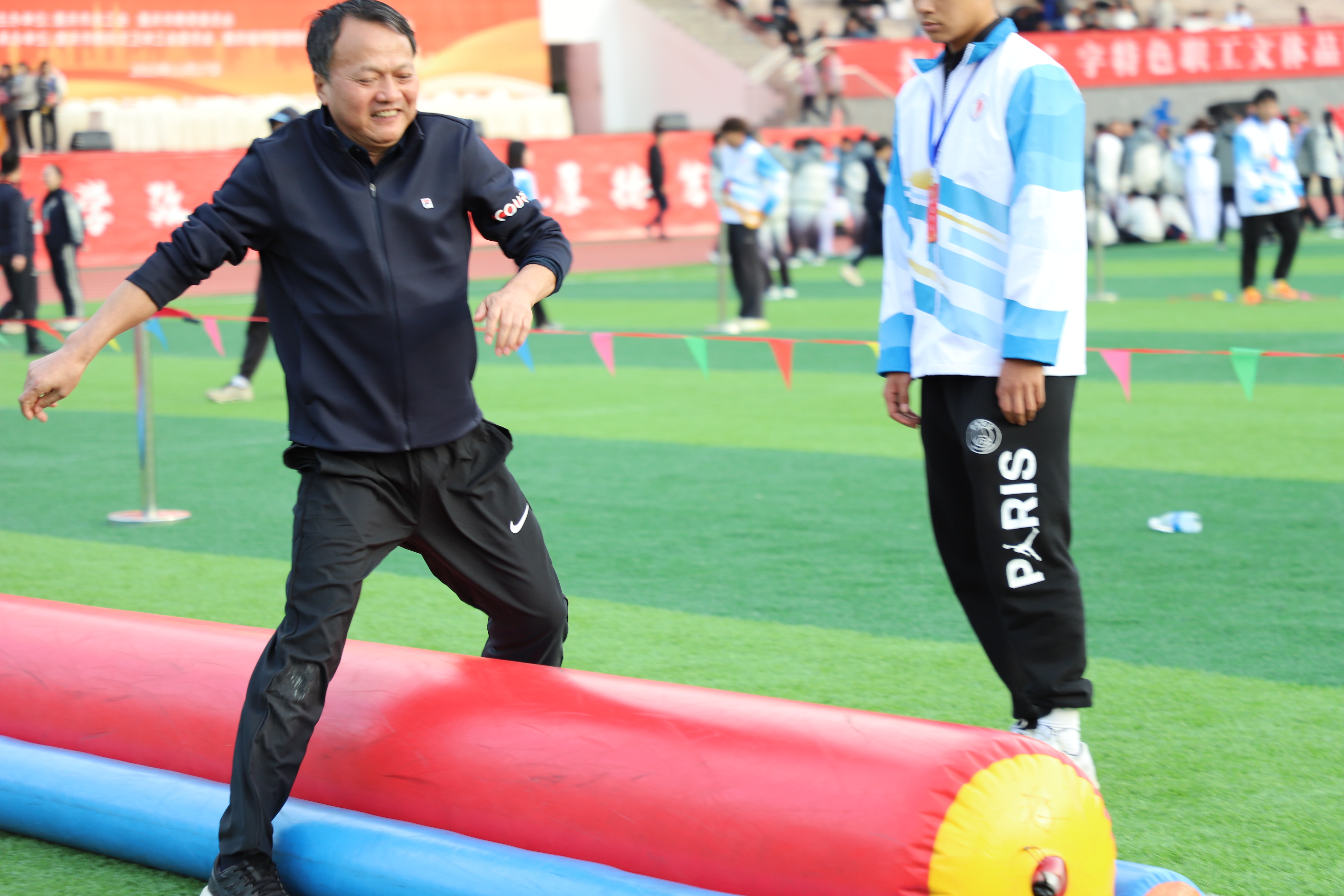 2023年11月17日,由市总工会、市教委主办,市教科文卫体工会、重庆城市管理职业学院承办的第22届重庆市“健康校园杯”高校专家教授运动会在城管职院田径运动场举行。首次参加运动会的bat365,在益智方块比赛中获得第三名,智传呼啦圈比赛中获得第七名的好成绩。