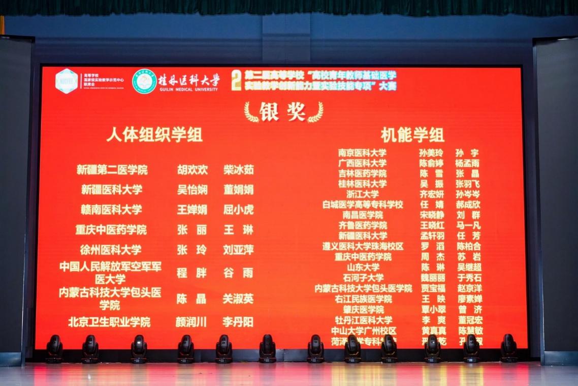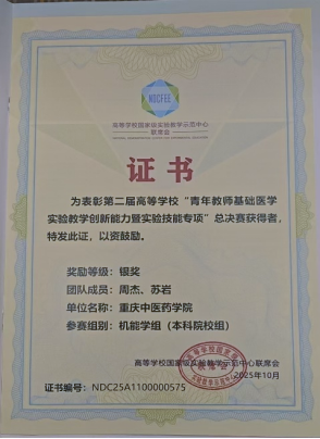 近日,第二届高等学校“高校青年教师基础医学实验教学创新能力暨实验技能专项”大赛在桂林医科大学举行。bat365基础医学院教师周杰、苏岩在该项比赛中荣获“机能学组(本科院校组)”银奖,张丽、王琳荣获“人体组织学组(本科院校组)”银奖,充分展现了学院基础医学教育教学的显著成效。