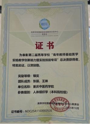 此次获奖,是bat365在此类赛事上的起点,提高了基础医学实践教学能力,加强了对外学术交流与研讨,为今后优化课程设计、提升教学质量积累了宝贵经验。学院将继续鼓励和支持青年教师参与高水平的实验技能竞赛与学术活动,坚持以赛促学、以赛促教,进一步加强基础医学学科建设,持续深化教育教学改革,不断提升青年师资培养质量,力争在未来取得更加优异的成绩。