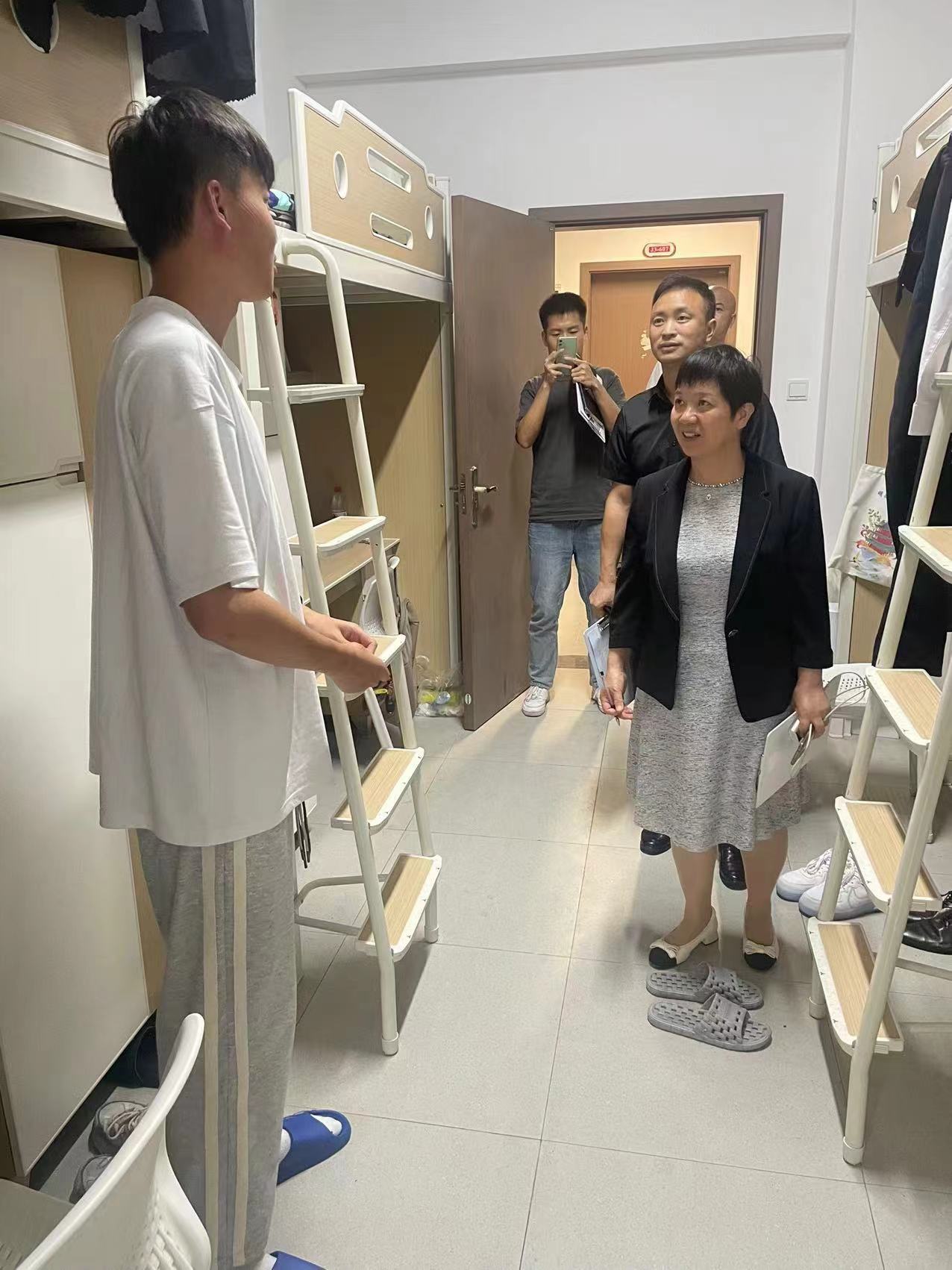 后勤保卫处负责人黄小平和学工部负责人任源钢带队,分管消防、安全、水电、宿管、辅导员的老师参与了本次检查。检查小组根据学校管理要求,重点抽查了大功率电器、线板接拉、消防隐患、宿舍卫生等情况,同时也向同学们讲述了检查目的、用电规范、环境卫生标准等,引导学生树立健康正确的住宿意识。