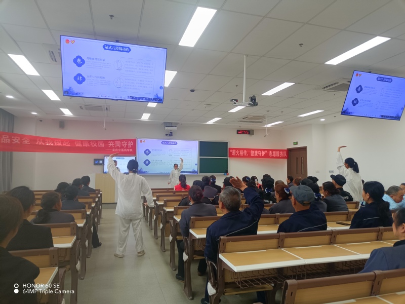 最后,“薪火相传,健康守护”志愿服务队通过生动形象地讲解和演练,向大家展示了八段锦的呼吸技巧与基本动作,引导大家树立正确的健康理念,养成良好的生活习惯。