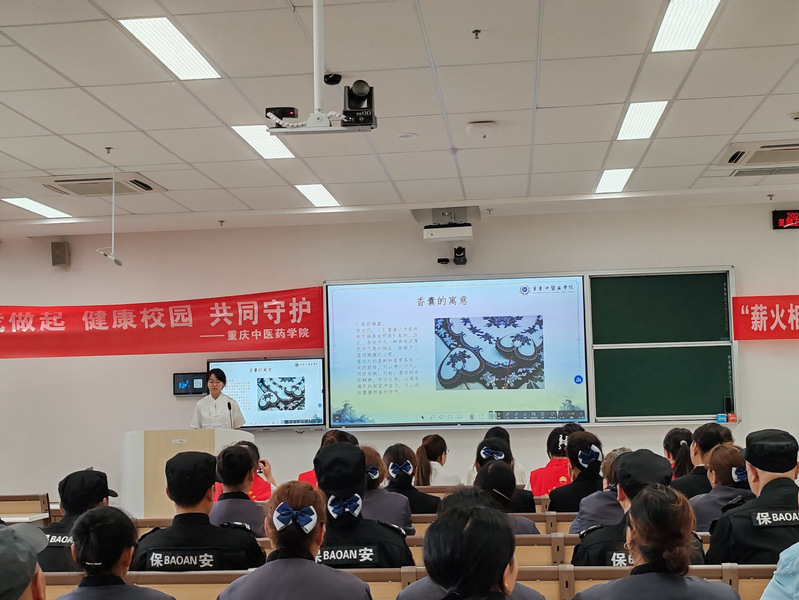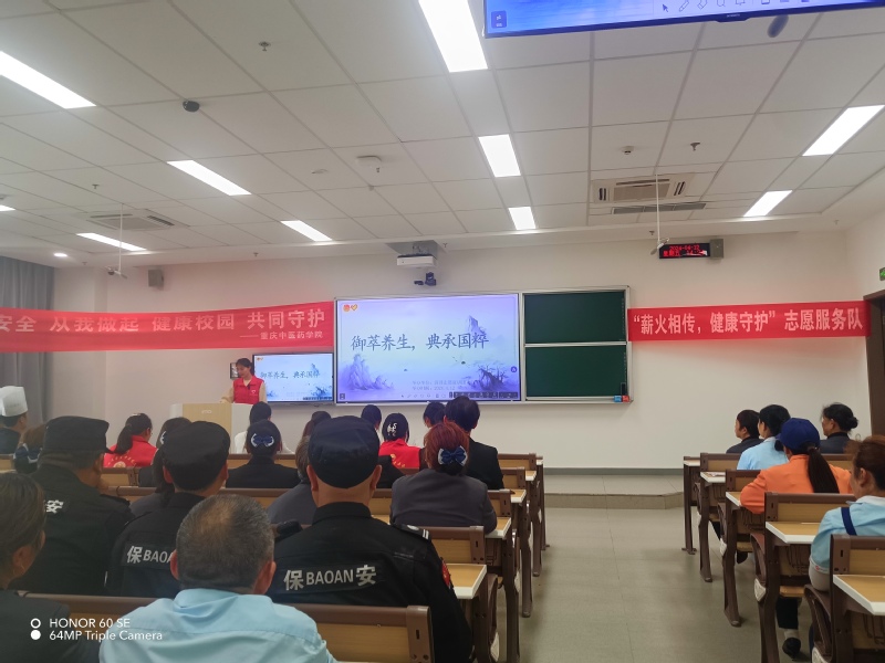 2024年4月12日下午2点,后勤保卫处党支部联合针灸推拿学院党总支、团总支举办了一场以“弘扬中医文化,守护师生健康”为主题的宣讲活动。此次活动由后勤保卫处支部书记袁瑛同志主持,针灸推拿学院2024年全国大学生中医药文化宣讲团“路路通”志愿服务队、“济泽”志愿服务队、“薪火相传,健康守护”志愿服务队开展中医药文化宣讲,师生代表、物业及食堂工作人员等共100余人参加。