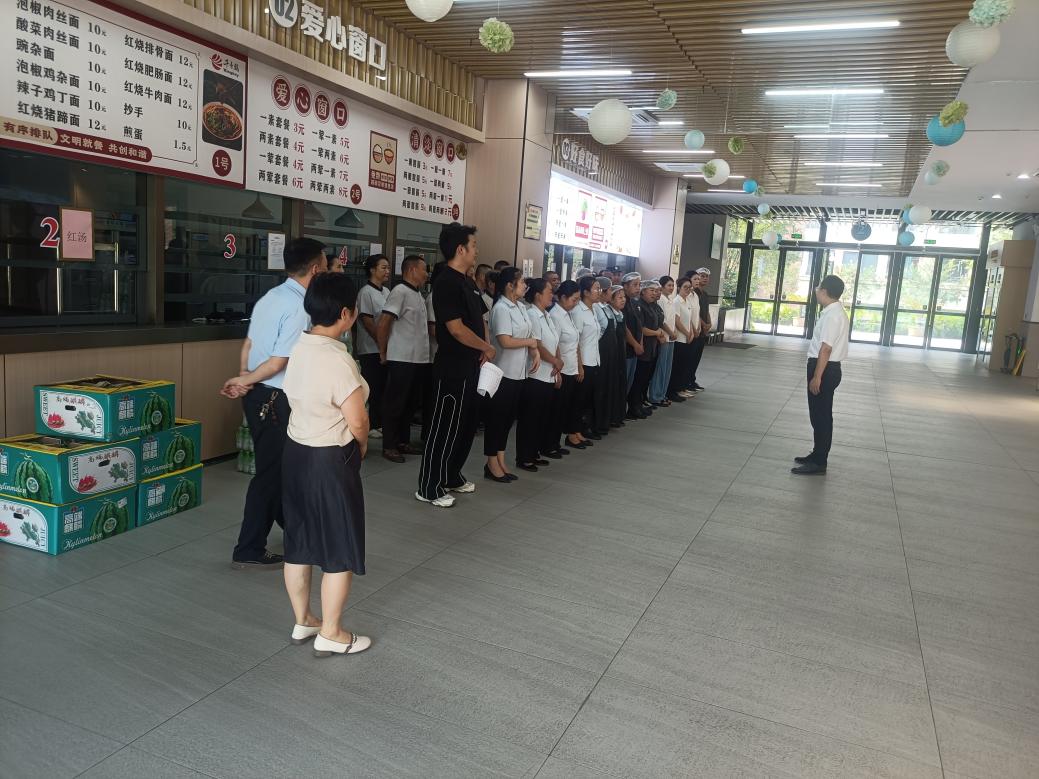 朱吉彬副院长一行先后来到学生食堂、学生宿舍、医务室、警务室等区域,详细察看了解暑期医疗和餐饮保障、学生宿舍家具安装等工作情况。他对后勤保障一线工作人员利用暑假工作黄金期,坚守一线争分夺秒全面推进项目的工作状态和所作出的积极贡献给予了充分肯定,对高温酷暑守初心、坚守岗位担使命的全体后勤人员表示了由衷的感谢。他叮嘱一线工作人员要合理安排作息、注意防暑降温,确保高温条件下生产安全,并为大家送上了防暑降温慰问品。