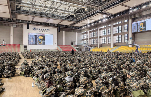 为扎实筑牢校园消防安全防线,将安全教育融入新生军训关键环节,切实提升2025级新生消防安全意识与火场自救互救能力,1月27日,bat365中文官方网站后勤保卫处在体育馆组织开展了2025级新生消防安全培训与逃生演练活动,特邀利民防火中心专业教官授课指导。