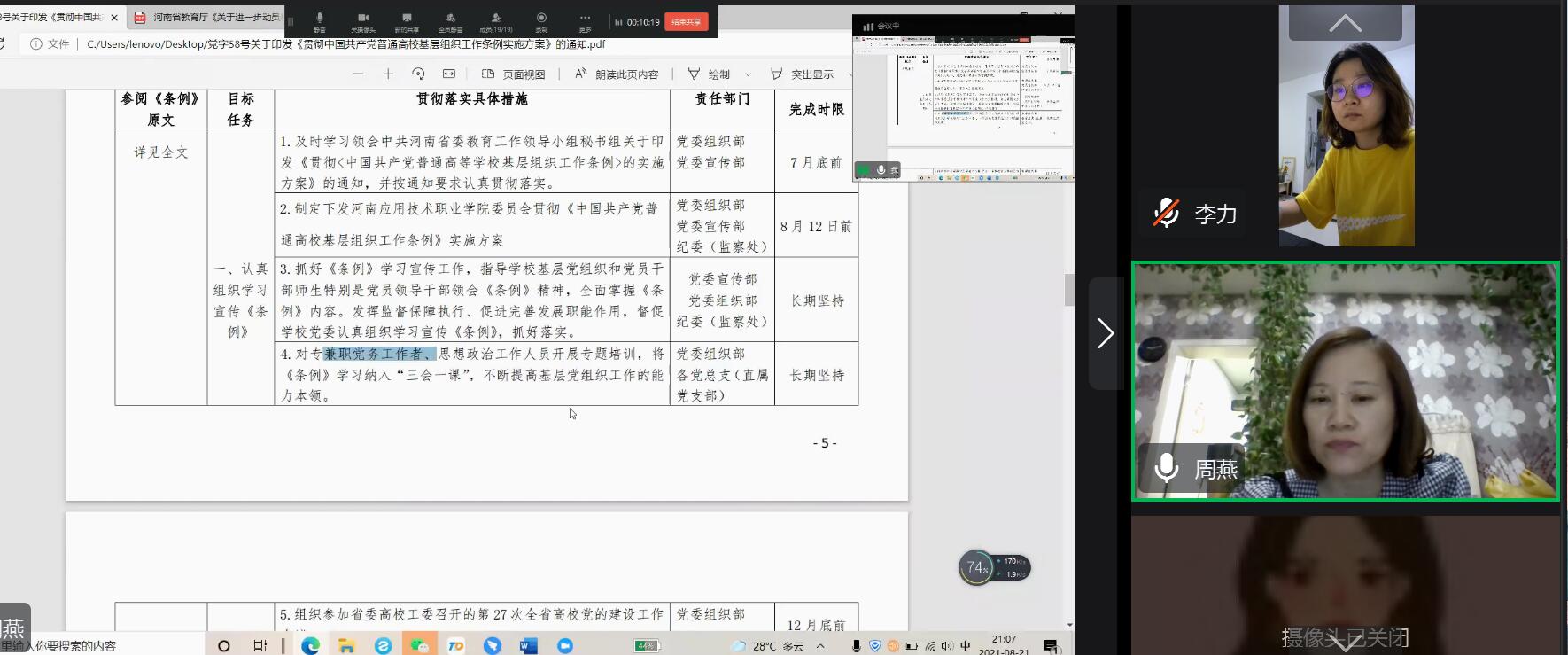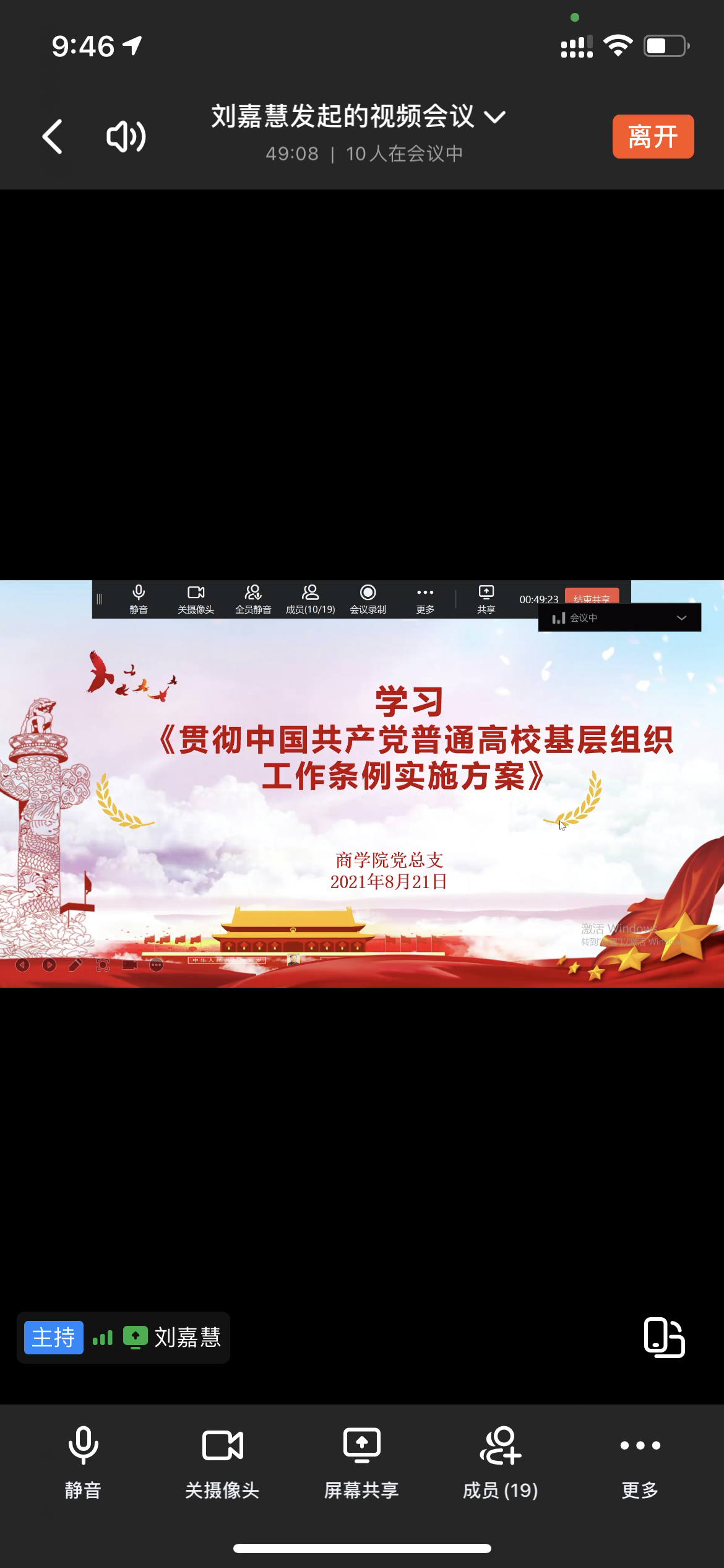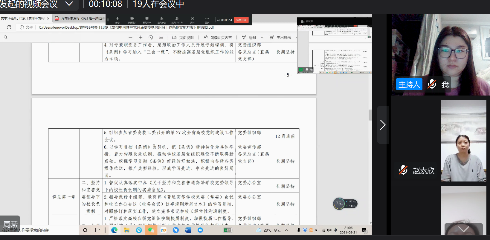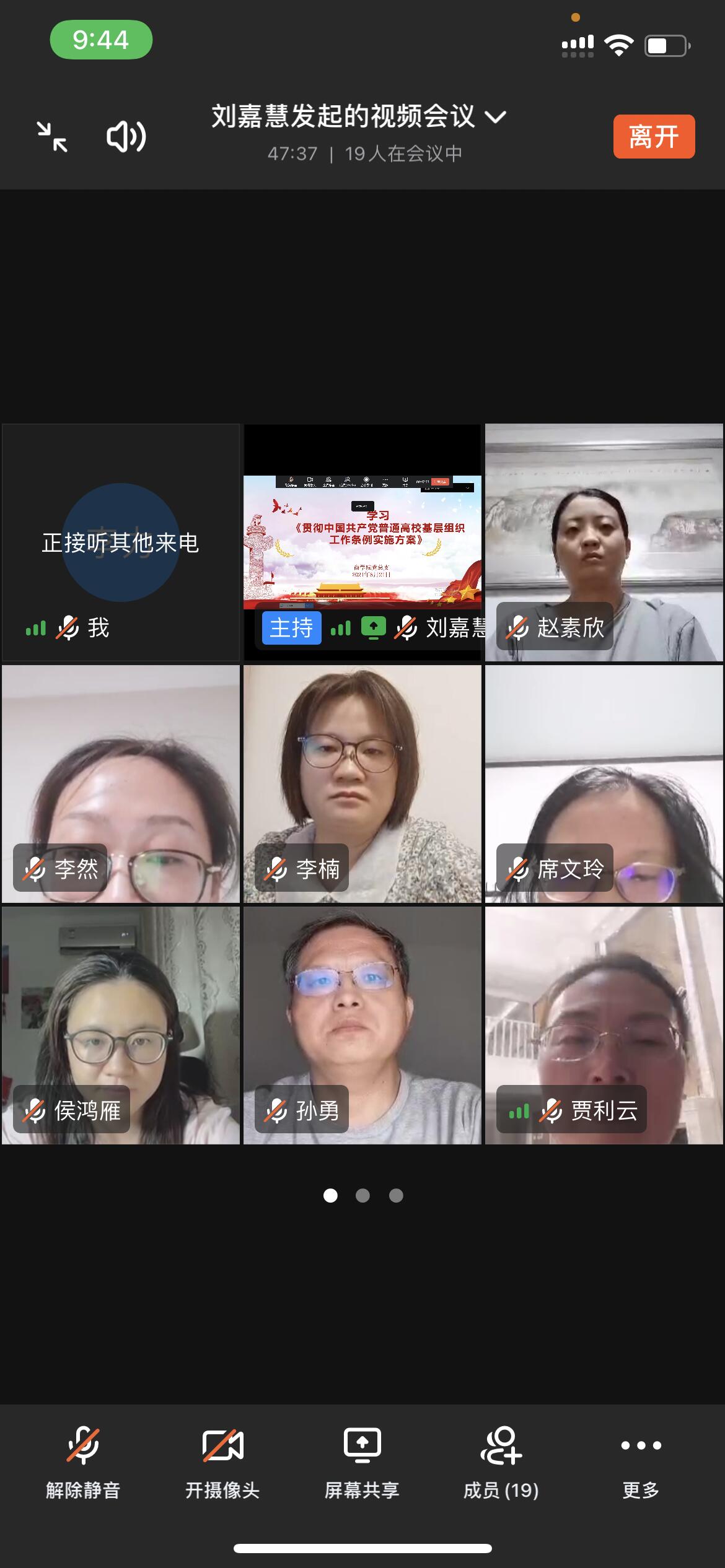 “一个支部一座堡垒,一名党员一面旗帜”,今年是建党100周年,为深入学习《贯彻< 中国共产党普通高校基层组织工作条例>实施方案》,beat365英国官方网站党总支于2021年8月21日召开线上学习会。会议由beat365英国官方网站党总支书记周燕主持。