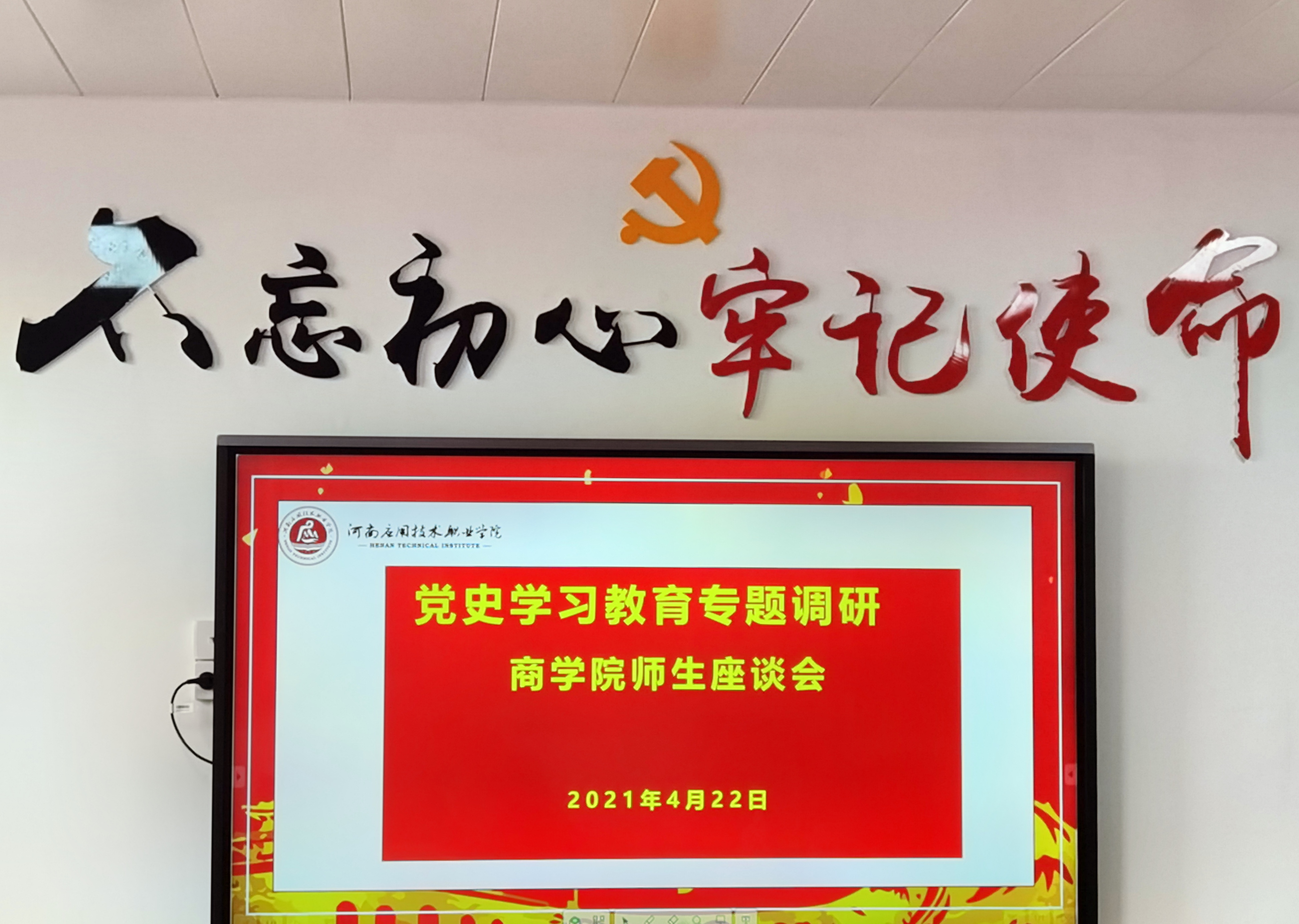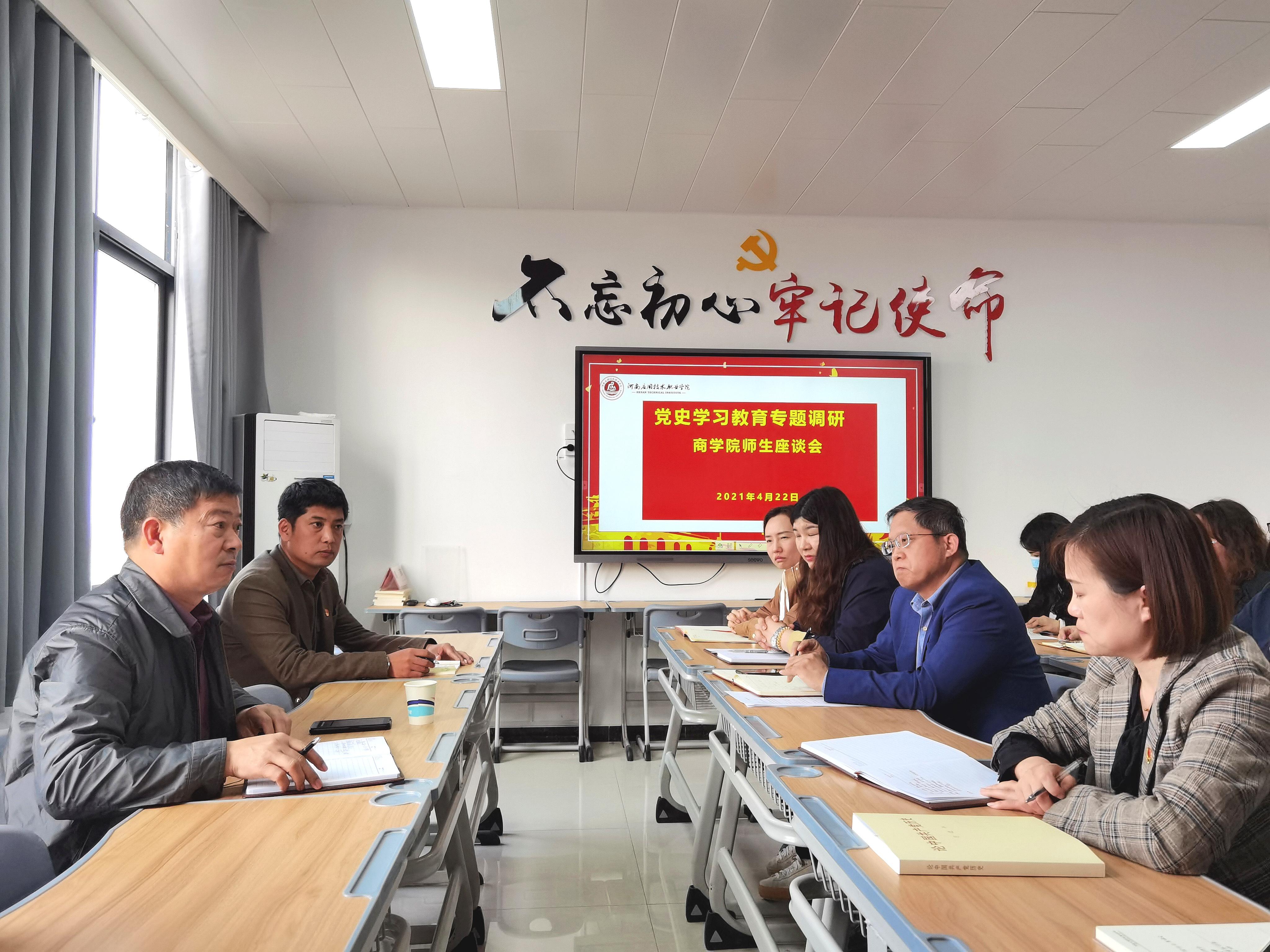 为进一步贯彻我校《党史学习教育实施方案》相关要求,积极落实“我为群众办实事”实践活动,推动我校党史学习教育深入开展,2021年4月22日下午,学校副校长刘振民在校团委书记张凡、校学生处副处长李海涛的陪同下来到beat365英国官方网站开展“党史学习教育”专题调研座谈会。会议由beat365英国官方网站党总支书记周燕主持,beat365英国官方网站部分教师以及学生代表参加了座谈会。