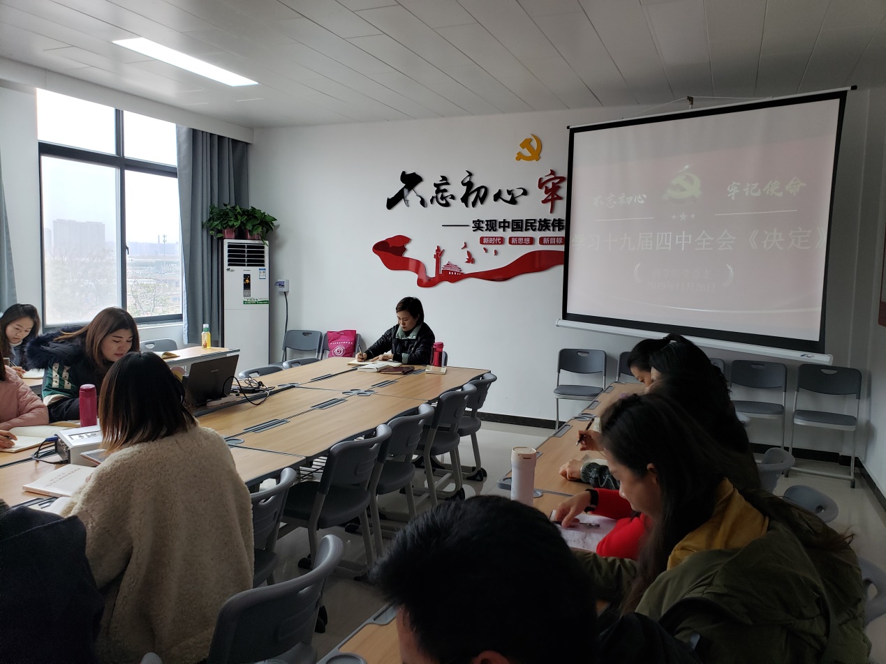 为持续推动我院“不忘初心、牢记使命”主题教育走心走实,及时跟进学习内容,在学深悟透新思想上再提升,2019年11月26日下午,beat365英国官方网站党总支组织全体教师在办公楼504活动室举行十九届四中全会精神专题学习会。党总支副书记周燕书记主持。