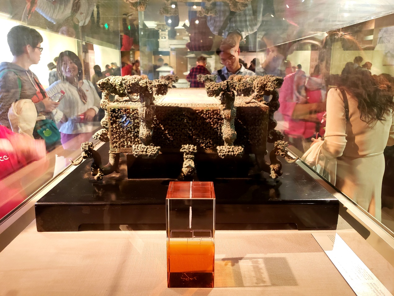 随后全体师生来到博物院西侧的“大象中原—河南古代文明瑰宝展”。中华文化源远流长,5000多年的中华文明史,河南占据了重要的一席之地。从上古时代到明清,河南文化多姿多彩。此次展览,从河南的简称“豫”开始,此次展览包括四个单元,分别为《文明曙光—原始社会时期》《定鼎中原—夏商周春秋战国时期》《有容乃大—两汉魏晋南北朝时期》《盛世繁华—隋唐宋元明清时期》,结合每个时期最重要的文物,展现了河南大地的古老文明。讲解员讲的认真,师生们参观的也很仔细,并不时的与讲解员进行互动交流。