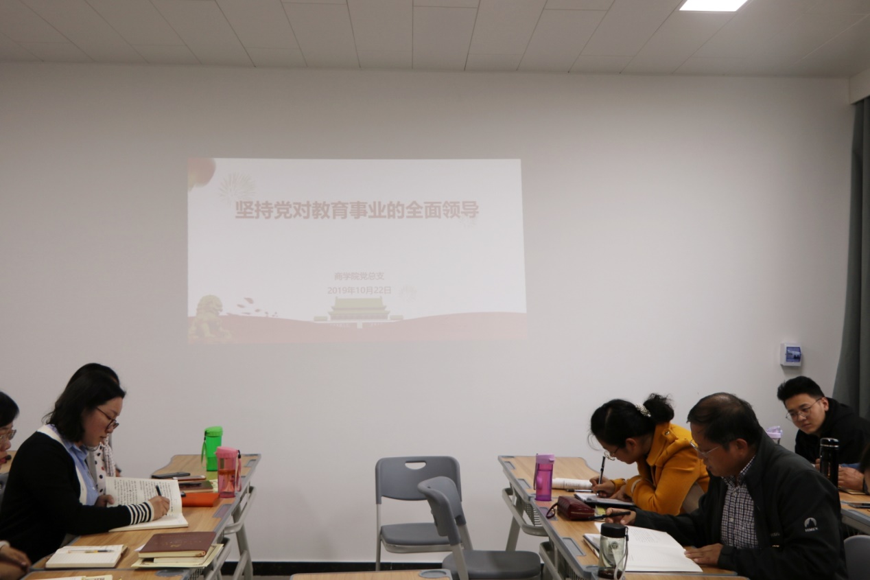“党政军民学,东西南北中,党是领导一切的”。加强党的领导是做好教育工作的根本保证。为了学习贯彻习近平总书记关于教育相关指示精神,2019年10月22日,beat365英国官方网站全体专兼职教师一起聆听了党总支书记孙勇院长的主题党课——“坚持党对教育事业的全面领导”。