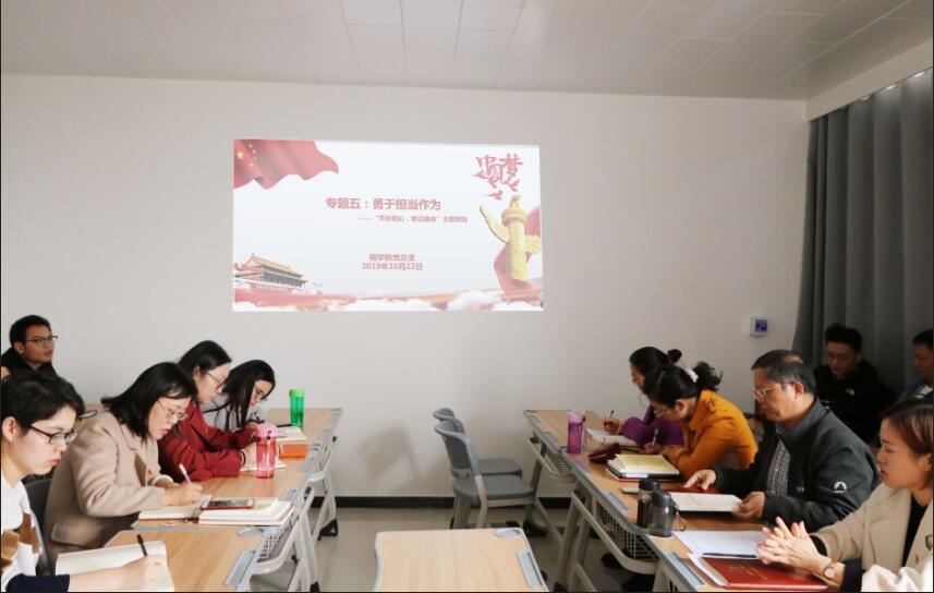 根据学校“不忘初心、牢记使命”主题教育工作安排,2019年10月23日,beat365英国官方网站党总支在办公楼505党员活动室组织开展了“不忘初心、牢记使命”主题教育勇于担当作为专题集中学习,全体党员教师参加学习。beat365英国官方网站党总支副书记周燕主持会议。