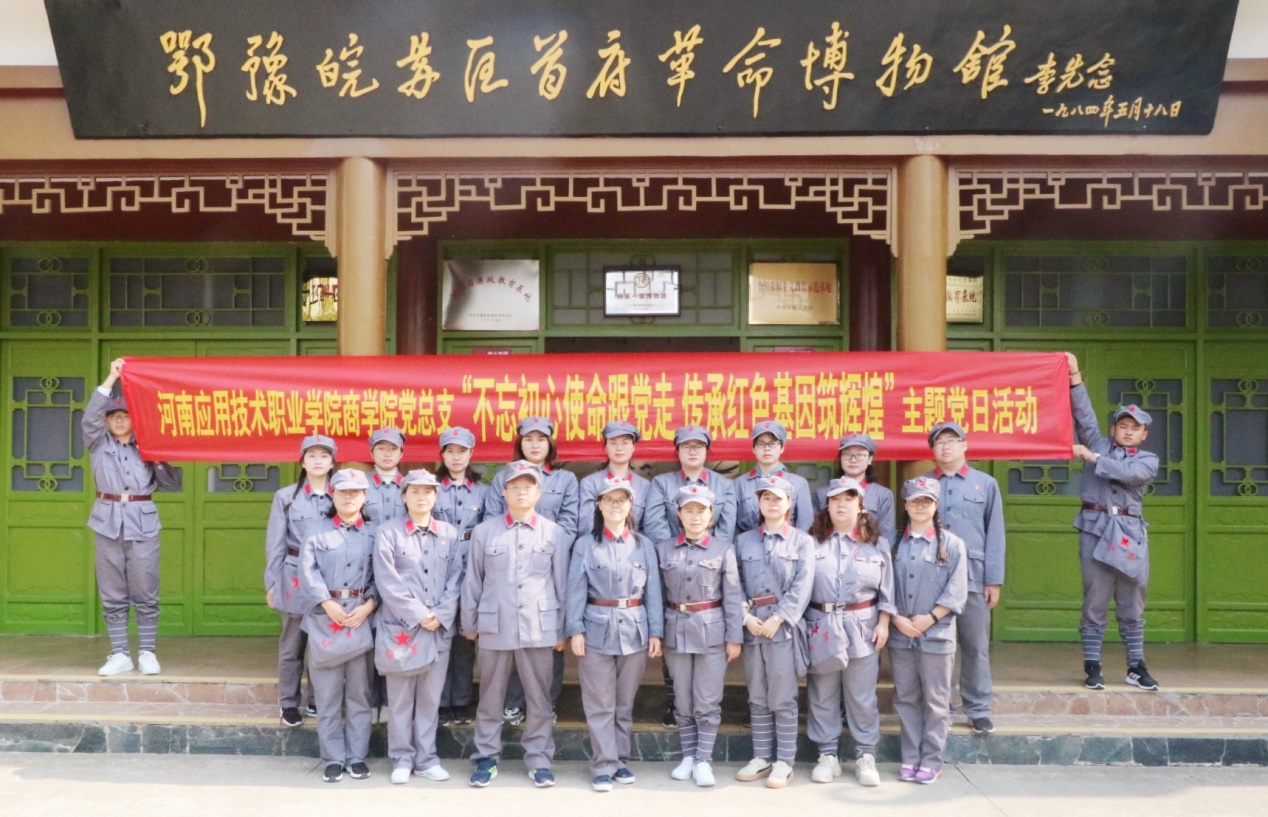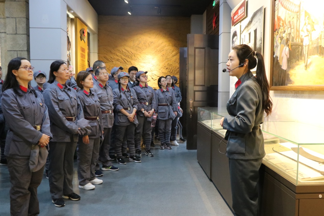 主题学习活动以参观历史旧址、博物馆,聆听讲解、现场教学、学唱红军歌谣、体验老区变化等多种形式开展,利用丰富的红色资源,把再现革命情景、追忆革命历史、体验红色文化、考验自我品格、熔炼团队精神融合在一起。师生党员一行身着红军服,先后来到鄂豫皖苏区首府烈士陵园、“志仁小道”、许世友将军故里、鄂豫皖苏区首府革命博物馆、列宁小学旧址、“红田”惨案旧址,每到一处,党员干部们都认真听取讲解,实地参观了历史图片、资料、抗战文物等。