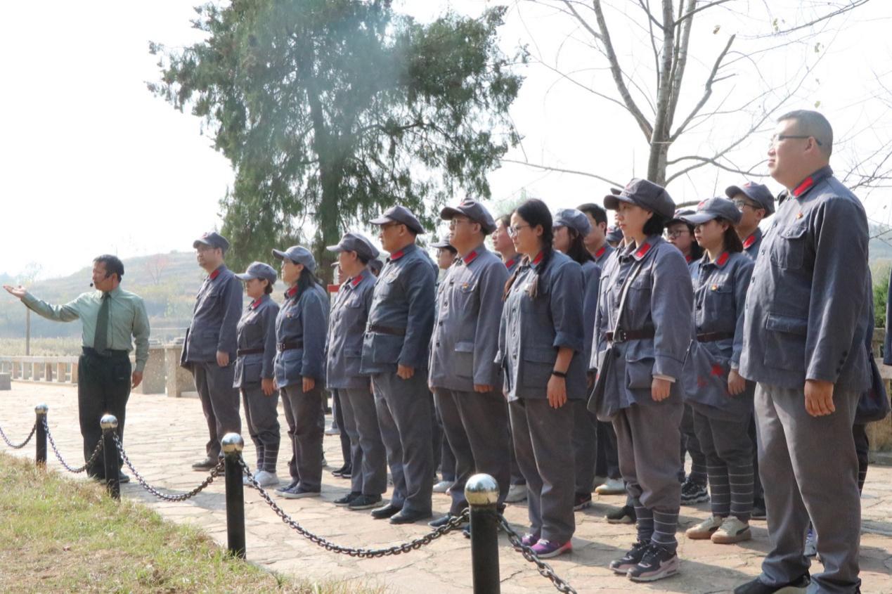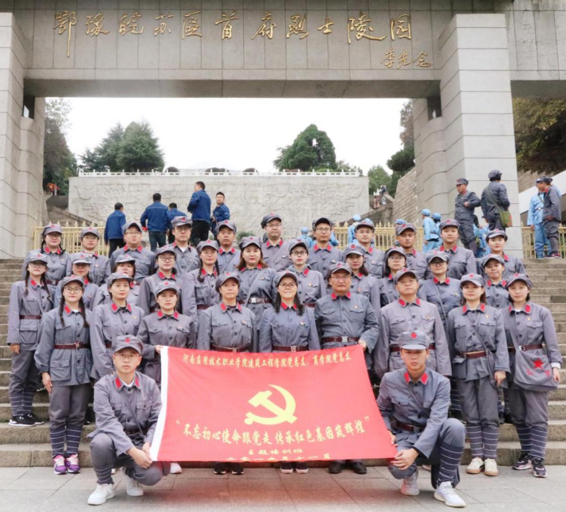 革命先烈永牢记,奉献精神代代传。2019年11月3日至11月4日,我院师生党员一行共20人,追随着习近平总书记的脚步,赴著名的“将军县”——河南省新县开展“不忘初心、牢记使命”主题党日活动,旨在缅怀革命先烈,学习革命精神,传承革命遗志。在传承“坚守信念、胸怀全局、团结一心、勇当前锋”的大别山精神中,坚守初心,勇担使命。让党员干部的理想信念在红色教育中得到进一步升华。