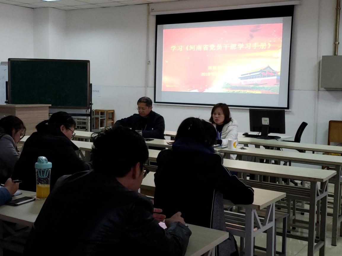 商贸学院党组织组织全体教师学习《河南省党员干部学习手册》