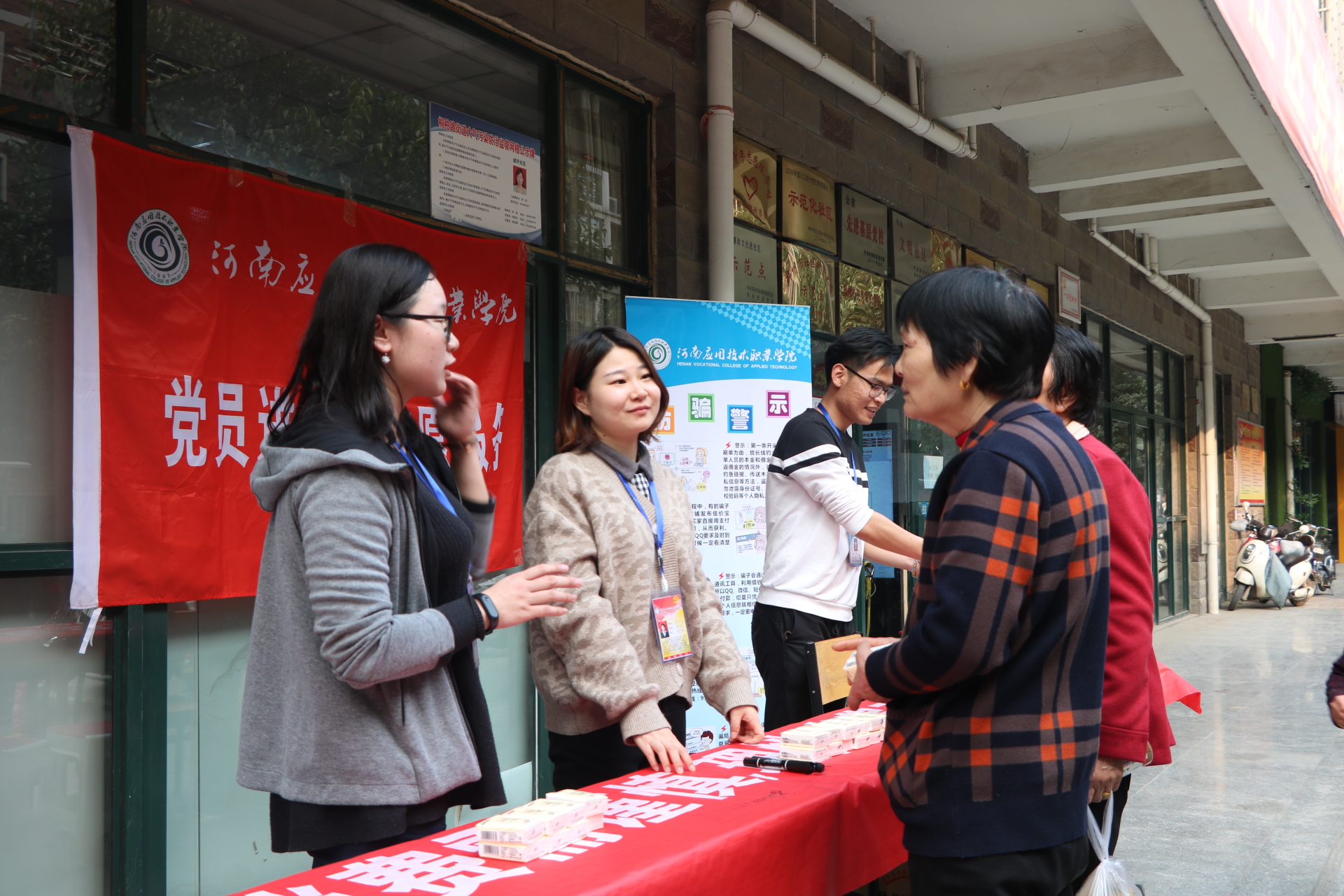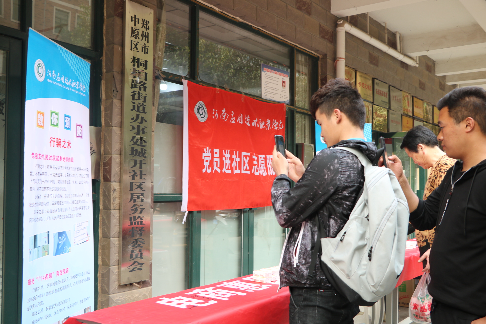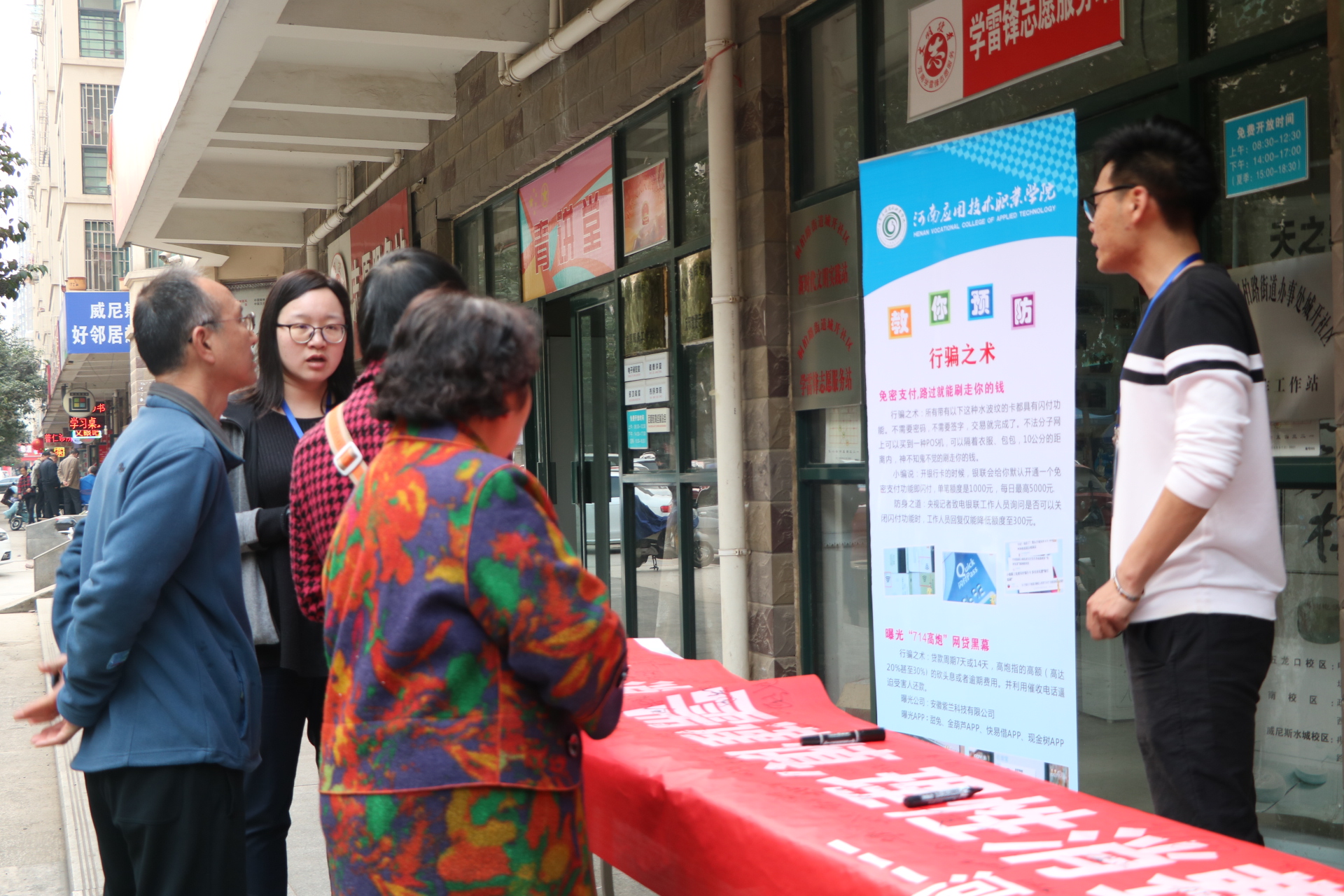 近年来,随着信息化、电子商务的发展,“网购”、“电商”普惠民生的同时,消费陷阱与网络诈骗也伴随之增多,披上华丽的外衣让人眼花缭乱。为了让社区居民提升金融风险防范意识,提高识骗防骗能力,beat365英国官方网站党员志愿者专程来到郑州城开社区,开展以“电商惠民生,消费需谨慎,理性消费观,远离网络贷”为主题的党员志愿活动。