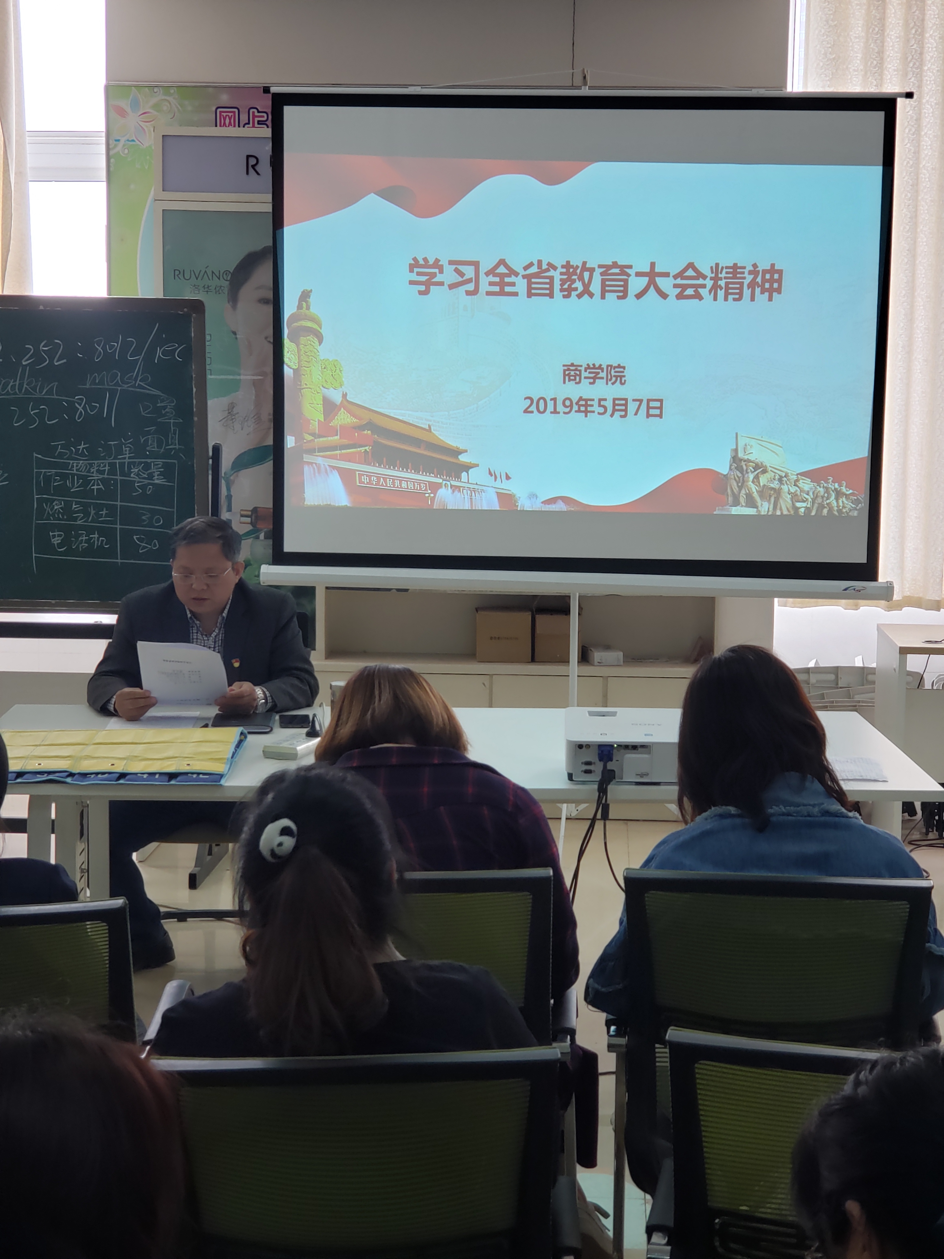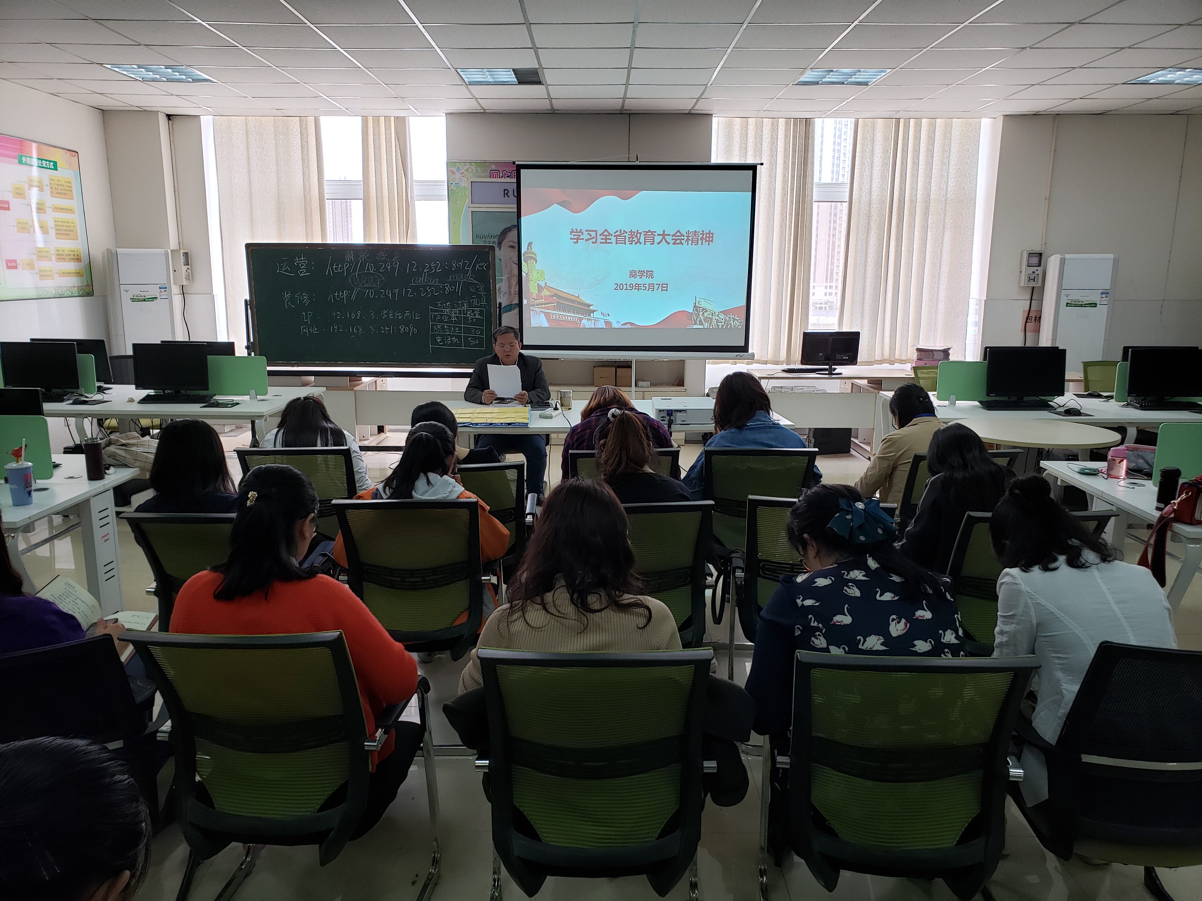 2019年5月7日,beat365英国官方网站全体教职工在E609教室学习全省教育大会精神。beat365英国官方网站院长孙勇同志主持会议。