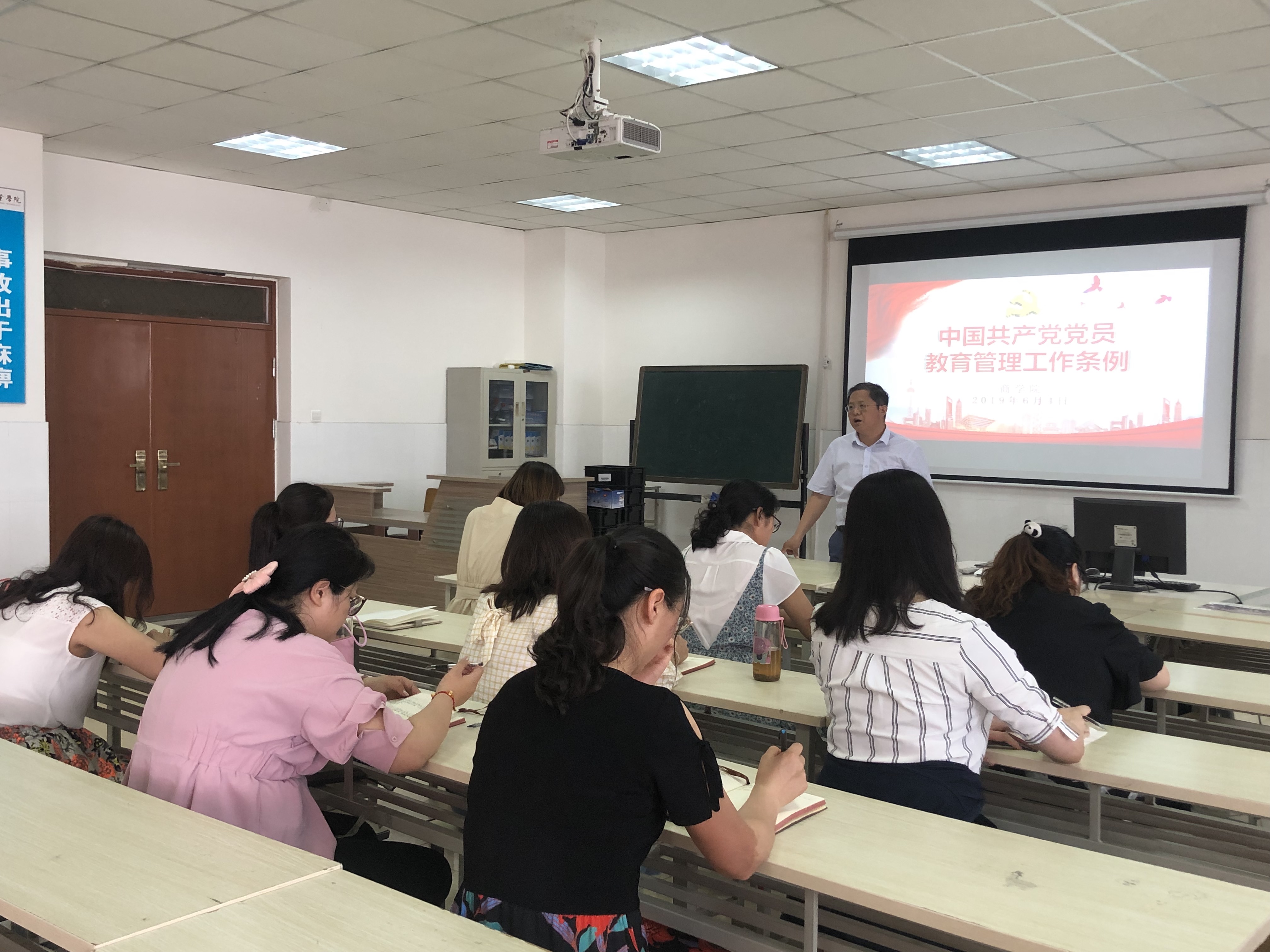 2019年6月4日下午,beat365英国官方网站在实训室E609教室组织党员同志学习《中国共产党党员教育管理工作条例》。beat365英国官方网站党总支书记、院长孙勇领学并主持学习会议。