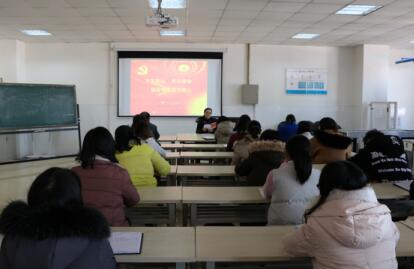 为了贯彻落实十九大会议精神,将“三会一课”制度在我校得到全面深入的开展,2017年12月19日,我校党委委员陈君丽教授在实训楼615为商贸学院教师开展一次生动的党课,商贸学院党总支书记周燕同志主持会议。