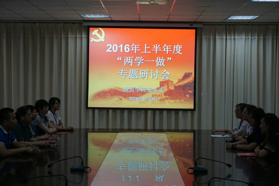 为响应中共中央在全体党员中开展“两学一做”学习教育的精神,2016年6月23日,学院党委书记郭改英同志在E楼四楼会议室给商贸学院全体党员上了一场生动的党课,此次党课会议由商贸学院党总支书记王雷同志主持,商贸学院全体党员参加。