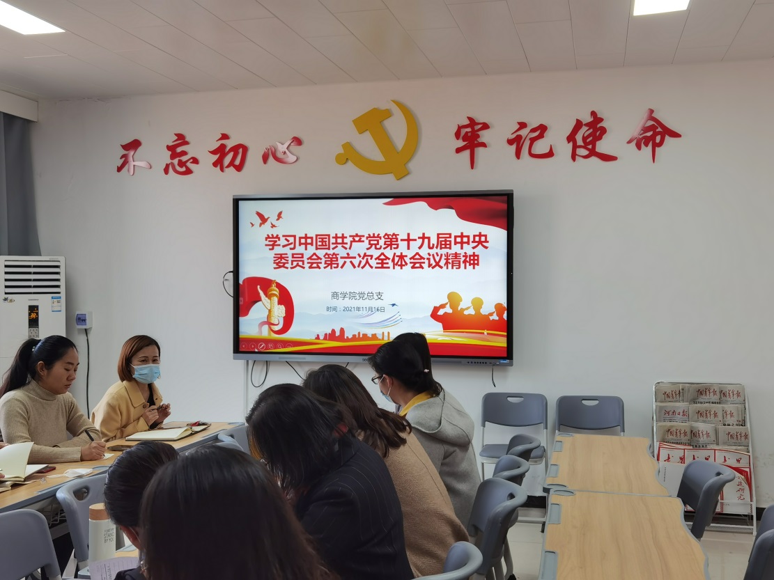 2021年11月16日,beat365英国官方网站党总支组织召开全体教师学习贯彻第十九届六中全会公报及河南省第十一届党代会重要精神专题会议,会议由beat365英国官方网站党总支书记周燕主持。