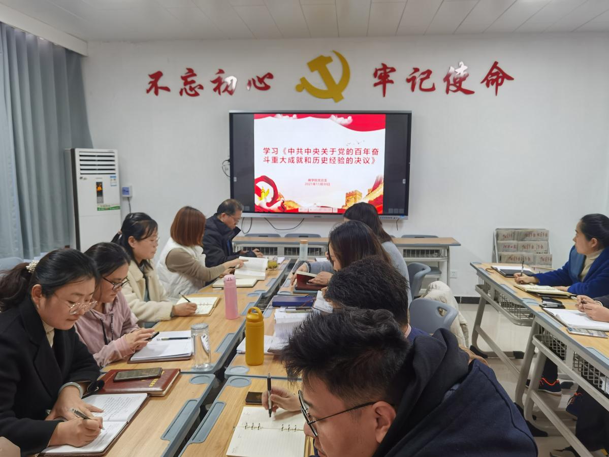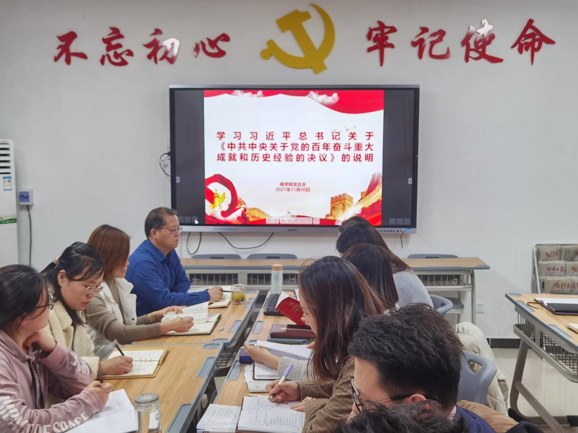 beat365英国官方网站党总支组织全体教师学习《中共中央关于党的百年奋斗重大成就和历史经验的决议》及习近平关于《中共中央关于党的百年奋斗重大成就和历史经验的决议》的说明