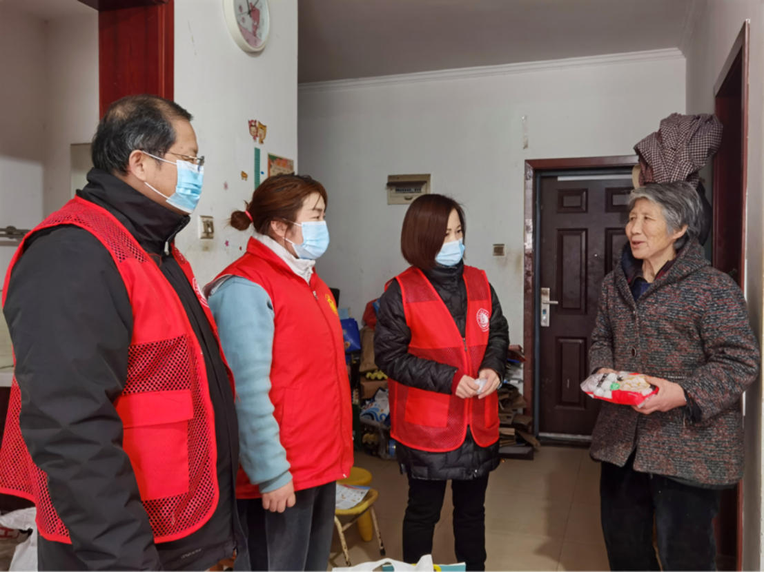 当日正值元宵佳节,了解到社区正准备对小区内的困难户开展暖心慰问活动。beat365英国官方网站党员教师穿上红色志愿服,以志愿者的身份和社区工作人员对区中困难户进行了慰问,为他们送上油、米、面以及元宵等日常生活物资,并指导住户做好疫情常态化防控、家中防火、防电信诈骗等。党员教师们告诉困难群众:要相信党和国家的好政策,困难只是暂时的,日子总会越来越好。
