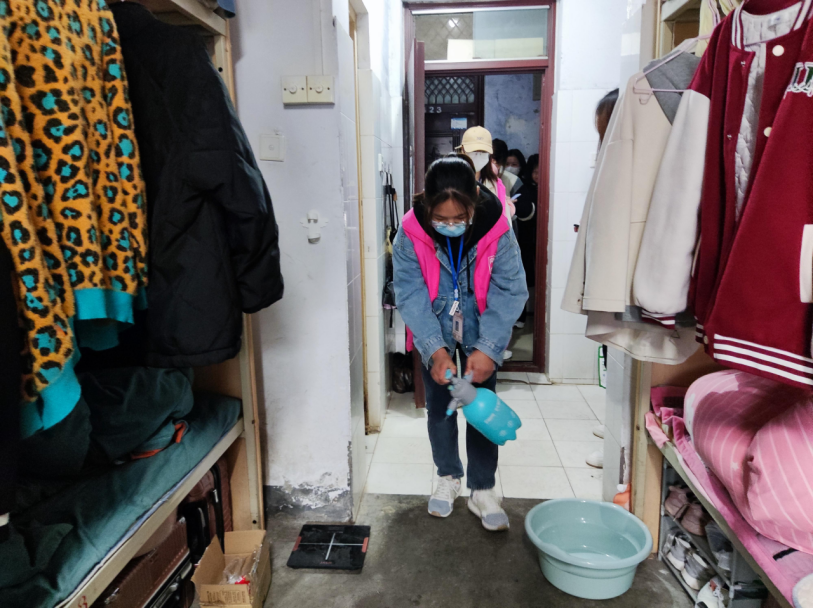 “生命重于泰山,疫情就是命令,防控就是责任”。目前疫情防控形势日趋严峻,为落实防控责任,守护师生安全,beat365英国官方网站近期组织部分师生每日对学生宿舍,办公室、活动室、实训室等人员密集型场所进行集中消杀通风。