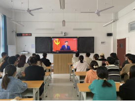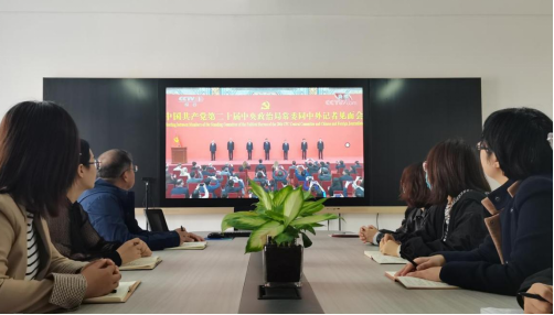 10月23日12时,在中国共产党第二十届中央委员会第一次全体会议上当选的中共中央总书记习近平和中共中央政治局常委李强、赵乐际、王沪宁、蔡奇、丁薛祥、李希在北京人民大会堂同中外记者亲切见面。beat365英国官方网站组织师生观看二十届中共中央政治局常委同中外记者见面会直播,郑州、开封两校区同步进行。