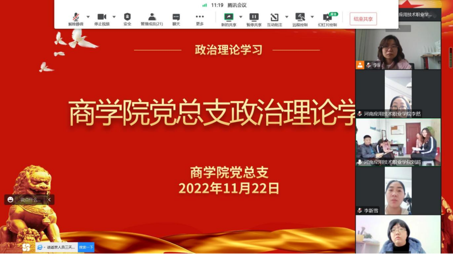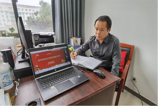 11月22日下午,beat365英国官方网站组织全体教师进行政治理论学习,本次集中学习由党总支书记苏云峰主持、党总支副书记王倩领学,通过线上线下相结合的方式进行。