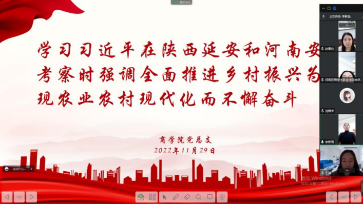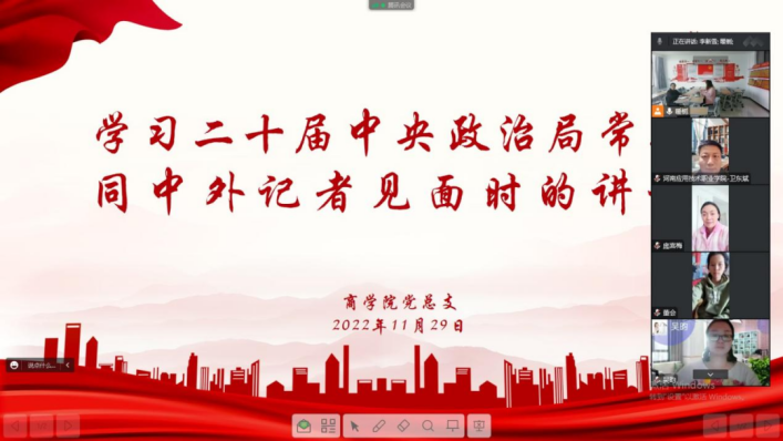 2022年11月29日下午,beat365英国官方网站组织全体教师进行政治理论学习,本次集中学习通过线上线下相结合的方式进行,由beat365英国官方网站党总支书记苏云峰主持,党总支宣传委员刘嘉慧领学。