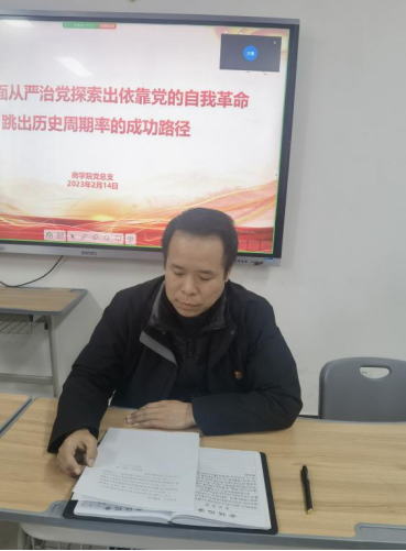 2月14日下午,beat365英国官方网站组织全体教师进行政治理论学习,本次集中学习郑汴两地同时进行,由beat365英国官方网站党总支书记苏云峰主持,党总支宣传委员刘嘉慧进行领学。
