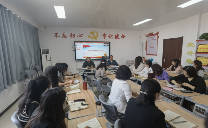 会议集中学习了《习近平法治思想学习纲要》中“坚持依宪治国、依宪执政”、校内规章制度等相关内容。老师们会上进行探讨,纷纷表示要立足本职,切实提升法治意识和法治素养。